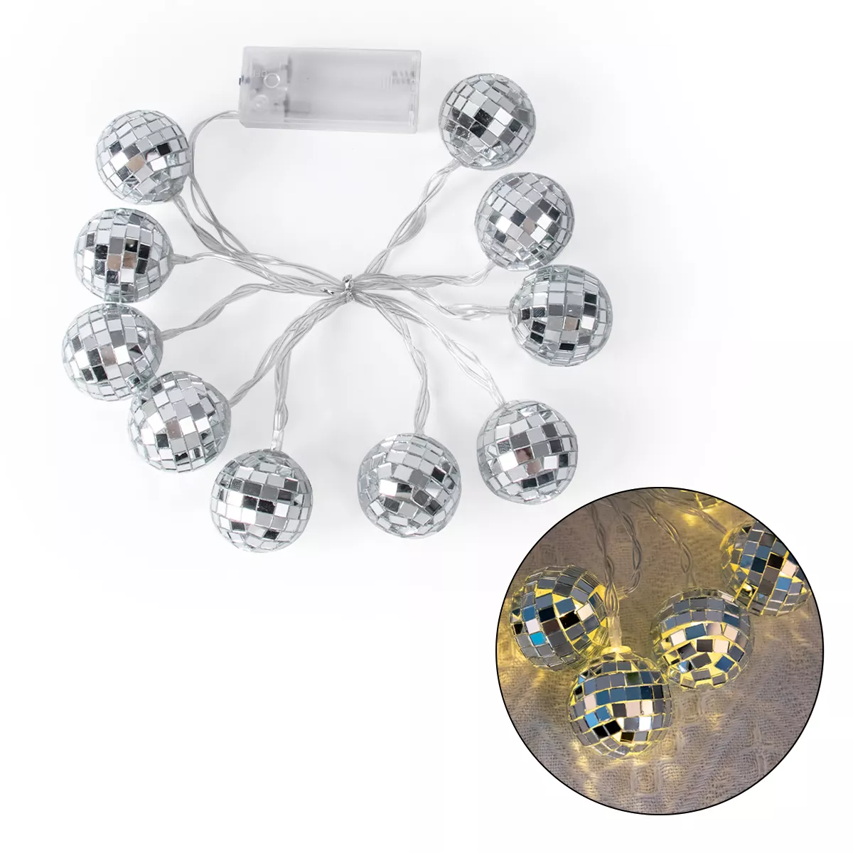 These LED string lights combine practicality with aesthetics, offering an easy way to elevate your decor. Made from lightweight and durable plastic, the mirrored surface of each disco ball reflects the light beautifully, creating a sparkling effect across your space. With a total length of 4.9 feet, this garland is perfect for indoor or outdoor use, draped along walls, tables, or ceilings.