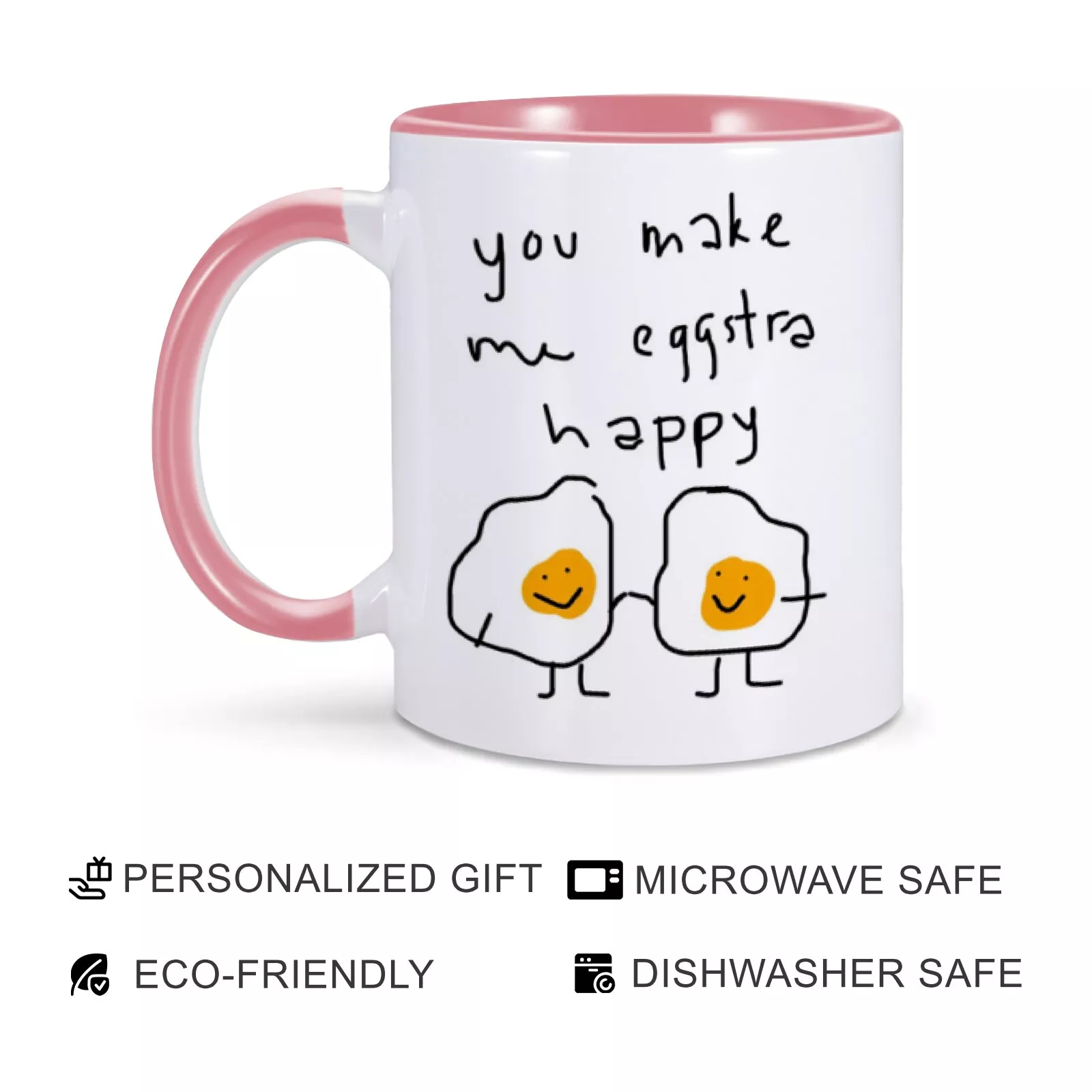 Brighten your mornings with this charming 11oz ceramic coffee mug featuring the delightful phrase, “You Make My Eggstra Happy.” Designed to bring joy to your daily routine, this mug is perfect for coffee, tea, milk, or any of your favorite beverages. Whether you’re sipping alone or sharing moments with loved ones, this mug turns every drink into a warm and memorable experience.