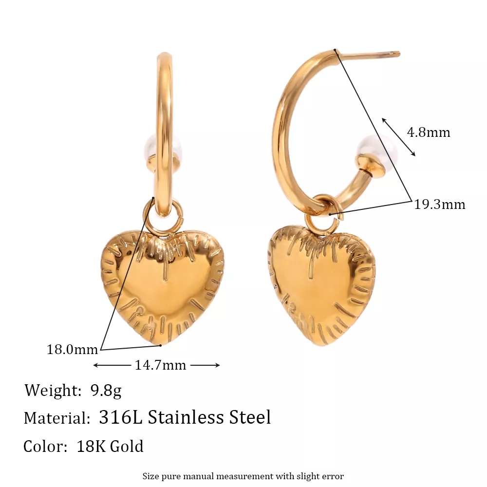 Elevate your style with these exquisite 18K Gold Plated Mini Heart Pendant Pearl Drop Earrings. Crafted with precision from premium 316L stainless steel, these earrings combine timeless design with modern durability. Their petite heart pendant and shimmering pearl accents add a touch of sophistication to any outfit, making them a must-have for your jewelry collection.