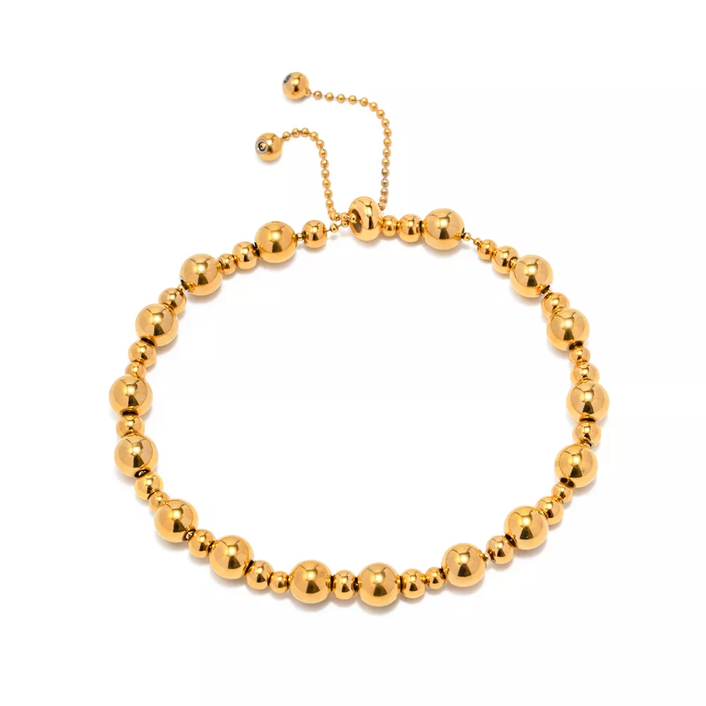 18K Gold Plated Stainless Steel Adjustable Bead Chain Bracelet
