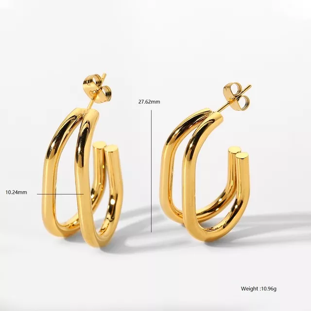 These hoop earrings combine contemporary design with timeless appeal. The layered oval shape offers a unique geometric aesthetic, making them an eye-catching addition to any jewelry collection. The 18K gold plating adds a touch of luxury, while the durable stainless steel ensures lasting quality. Perfect for women and girls, these earrings make a thoughtful gift for birthdays, anniversaries, or just because.