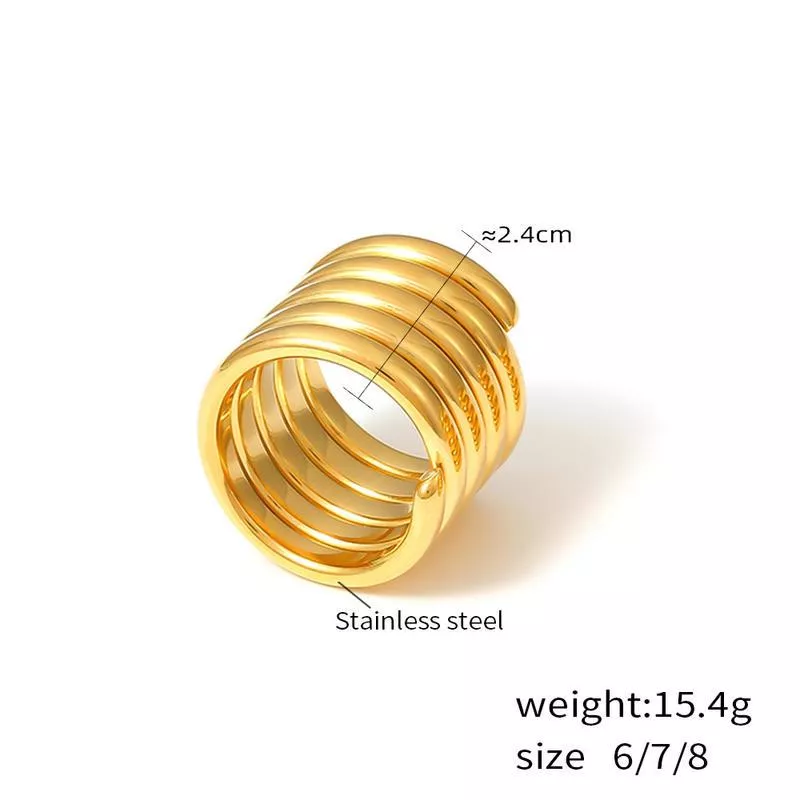 Step up your accessory game with this stunning 18K gold-plated stainless steel spring ring. Designed for both women and men, this versatile ring is the perfect combination of timeless elegance and contemporary hip-hop style. Its unique spring shape adds a touch of modern flair, making it the ideal choice for couples, parties, or anyone looking to make a bold fashion statement.