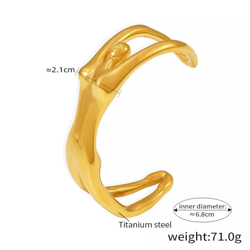 Step into sophistication with our 18K Gold Plated Stainless Steel Women’s Body Shape Cuff Bracelet. Designed for the modern woman, this exquisite piece blends timeless elegance with a contemporary edge. The unique body silhouette design adds a touch of artistic flair to your accessories collection, making it the perfect statement piece for any outfit. Crafted from premium 316L stainless steel and plated with a light yellow gold hue, this bracelet is as durable as it is beautiful.