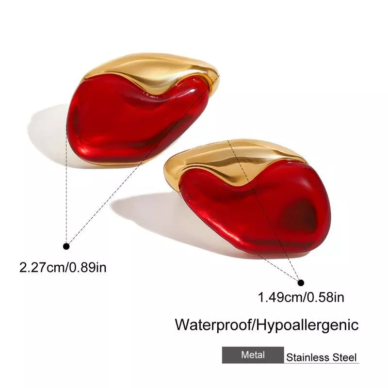 Elevate your style with these stunning 18K gold-plated ruby geometric irregular earrings. These earrings are the perfect blend of modern design and classic charm, making them a must-have accessory for any jewelry lover. Their unique geometric shape, paired with a vibrant ruby hue, adds a touch of sophistication and individuality to your look, whether it’s for a casual outing, a festive celebration, or a formal event.