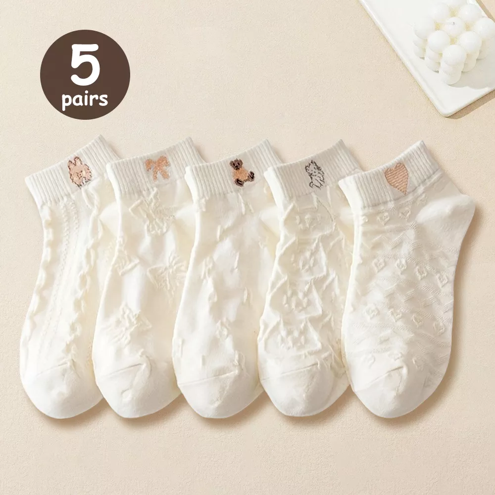 Add a touch of whimsy to your wardrobe with these 5 pairs of cute short socks featuring playful cartoon bear designs. Perfect for spring, summer, and autumn, these socks are crafted to keep your feet comfortable, cool, and stylish all day long. Whether you’re lounging at home or stepping out, these breathable, low-cut socks are a must-have for every sock drawer.
