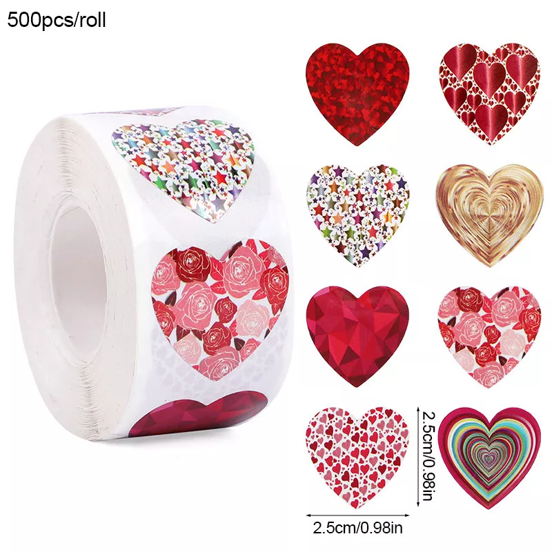 Make every gift and event unforgettable with these charming love heart paper stickers. With a roll of 500 pieces, you’ll have more than enough to spread love, joy, and a personal touch to your gifts, cards, and decorations. Designed with a diameter of 1 inch (2.5 cm), these stickers are the ideal size for sealing envelopes, adorning gift boxes, or decorating party supplies.