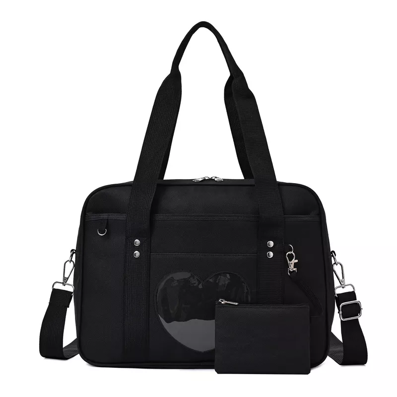 Whether you’re heading to an anime convention, a casual outing, or just looking for a stylish everyday bag, this Lolita-inspired itabag is your perfect companion. The transparent heart panel allows you to personalize the bag, giving it a unique touch that reflects your personality. Its large capacity ensures you can carry all your essentials without compromising on style.
