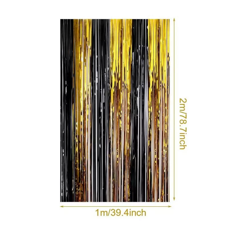 Bring your celebrations to life with the stunning Black and Gold Metallic Fringe Party Backdrop Curtain. Perfect for creating an unforgettable atmosphere, this shimmering foil fringe curtain adds a touch of glamour to any occasion. Whether it’s a wedding, birthday, or a festive New Year’s bash, this versatile backdrop is the ideal centerpiece for your party décor.