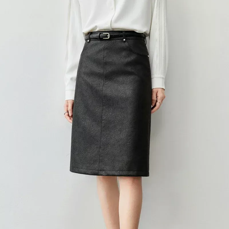 Elevate your office attire with this stunning high-waisted PU leather skirt, designed for a sophisticated, confident look. Perfect for the autumn and winter seasons, this knee-length skirt combines sleek style with professional elegance. Whether you’re heading to a business meeting or enjoying after-hours cocktails, this versatile skirt ensures you look your best with minimal effort.