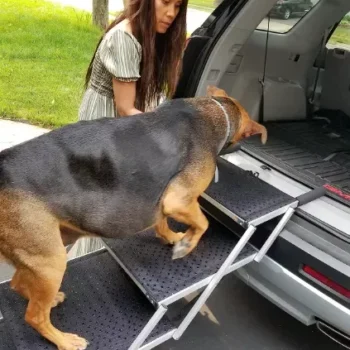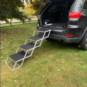 Alright, let's talk about this awesome product. I've got a pretty big pooch at home and he absolutely loves car rides. But he's gotten older, it has been harder for him to hop in and out of the vehicle like he used to. It was really starting to bum us both out. Then I found this magic solution! Now my furry buddy can get into the car without any trouble at all. And when we're done with our adventures, he can just stroll right back out again too. It’s made road trips fun again for both me and my four-legged friend! And you know else is seriously cool? The non-slip surface on this thing! This is such a huge plus because it gives me peace of mind knowing that my dog won't slip or fall while using it. He feels more confident getting in and out of the car now knowing that his paws aren’t going to slide from under him. So yeah, if you have an older or larger dog who struggles with getting in and out of cars, then you need to check this product out ASAP! You'll be doing yourself - but more importantly your best fur-friend - one heck of a favor. It's not only practical but also safe which makes it even better value for money. So don’t wait around – grab one today! Trust me; your canine companion will thank you later with lots of love-filled licks! 👍