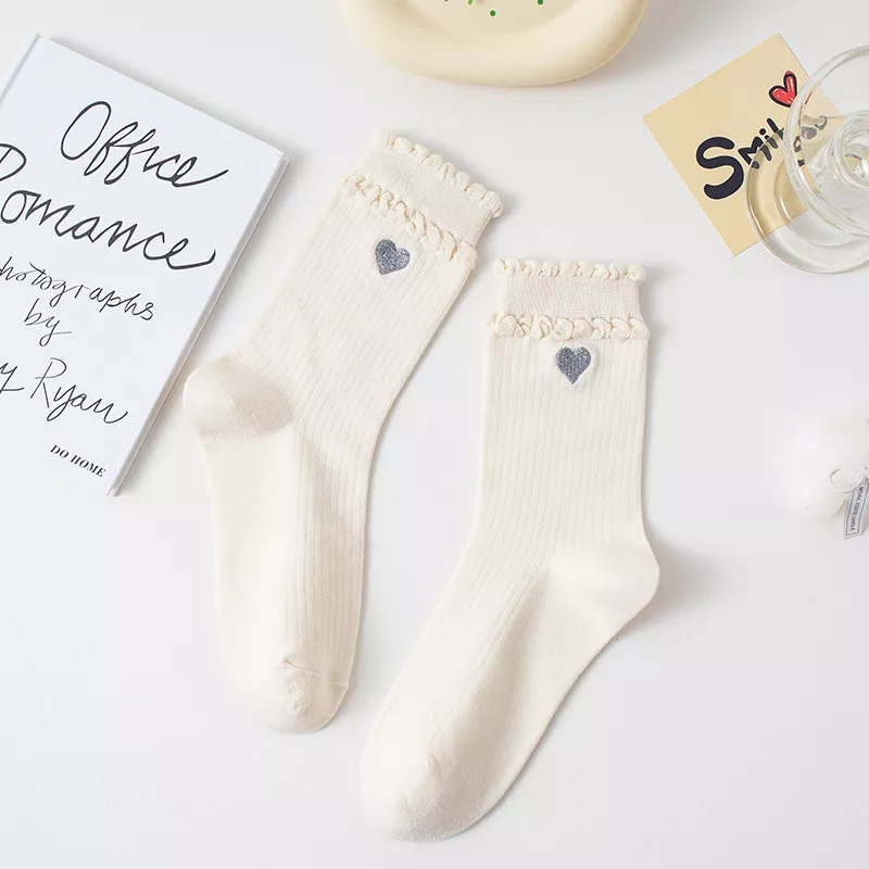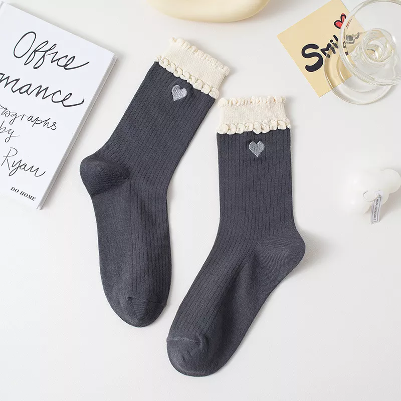 Bring a touch of elegance to your everyday wardrobe with these chic and adorable Double-Layer Lace Embroidery Love Socks. Perfectly blending preppy style with feminine charm, these socks are designed for girls who love to stand out. Crafted with premium cotton and featuring delicate bubble lace embroidery, they offer unmatched comfort and style for spring and autumn seasons.