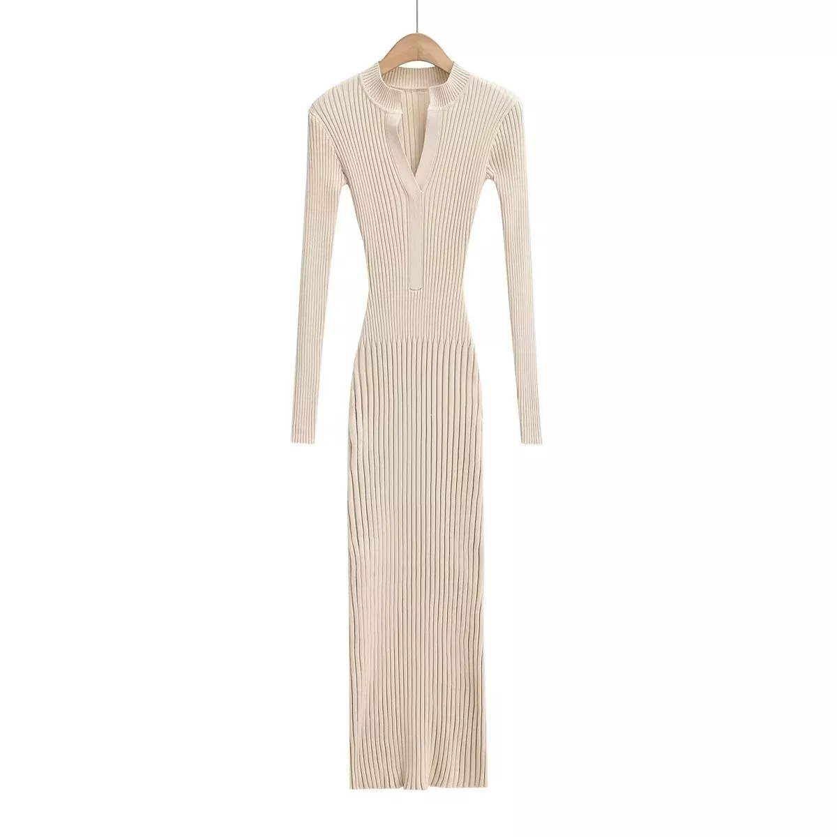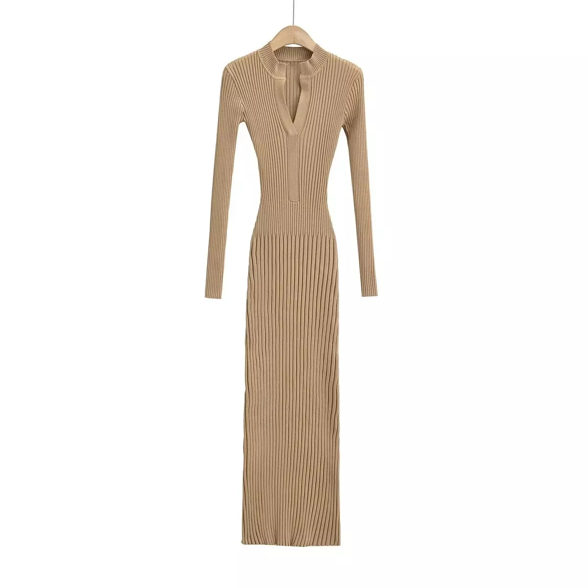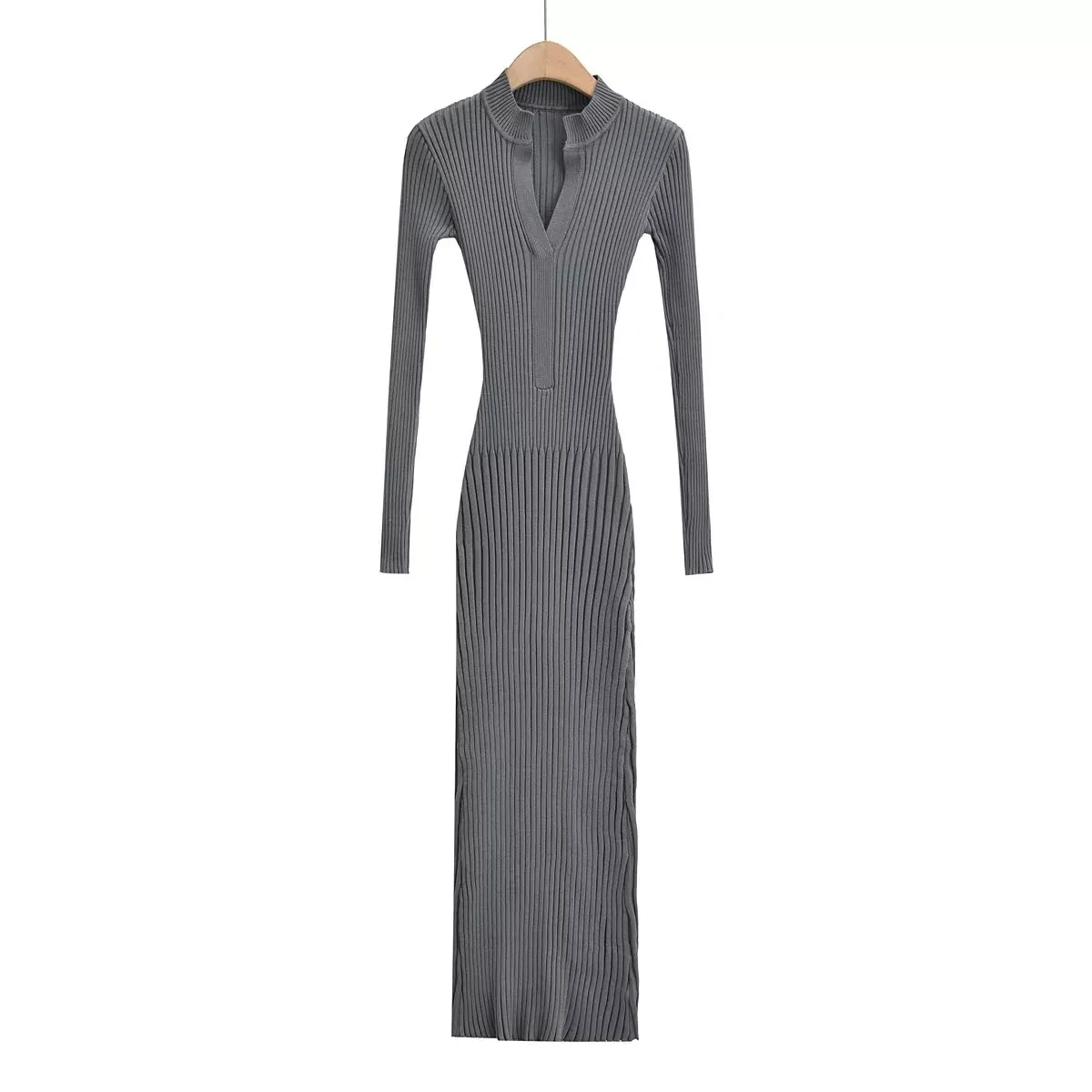 Step into the season with style and sophistication in this Chic V-Neck Knitted Sweater Dress. Designed to hug your figure and highlight your natural beauty, this dress combines a slim-fit silhouette with a flattering empire waistline for an elegant yet comfortable look. Perfect for crisp autumn days or cozy winter evenings, this versatile piece transitions seamlessly from casual outings to chic gatherings. Its ankle-length design and full sleeves provide warmth and style, making it a must-have addition to your wardrobe.
