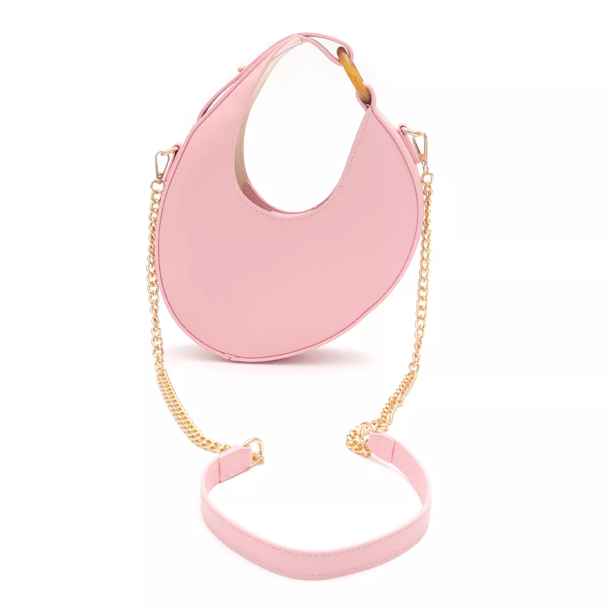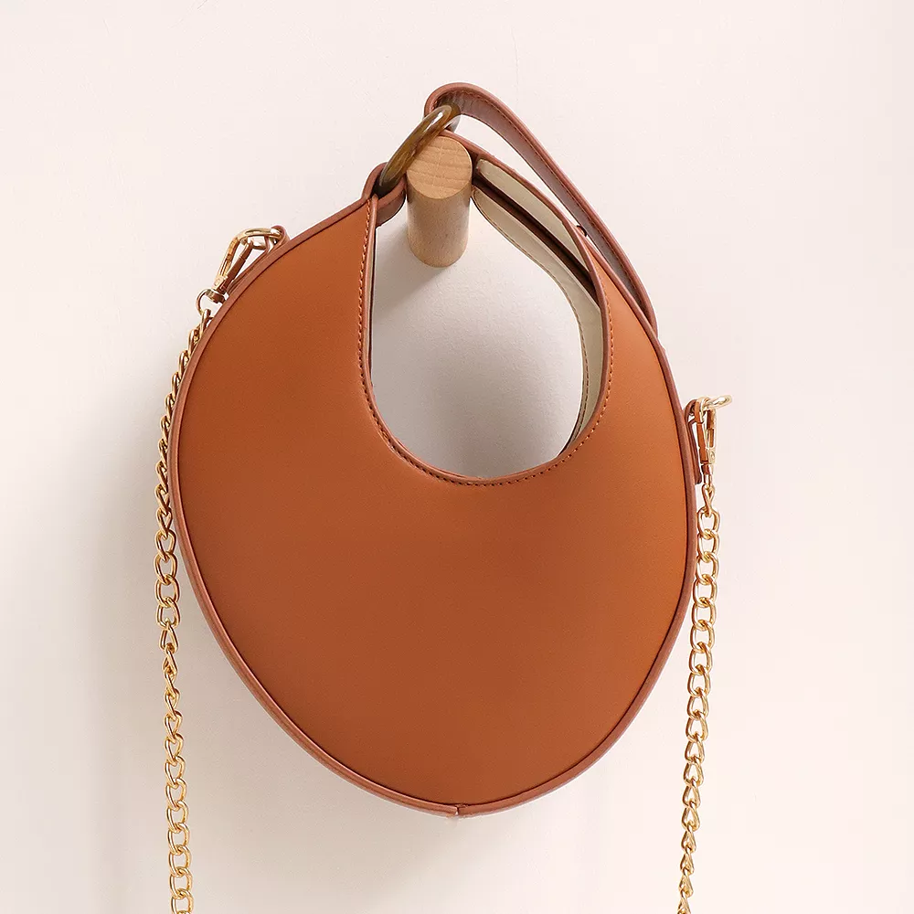 Complete your outfit with a touch of elegance and modern design. This chic handbag is crafted from premium vegan leather, ensuring a smooth, polished look while being eco-friendly. Featuring a unique half-moon shape and an eye-catching resin ring handle, this bag blends fashion with functionality effortlessly. Whether you’re stepping out for a casual day or attending a special occasion, this handbag is the perfect accessory to make a lasting impression.