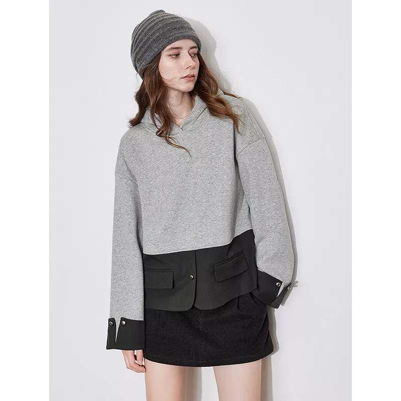 This sweatshirt is not just for staying warm – it’s about making a statement. The patchwork detailing brings a stylish twist to a classic fleece hoodie, while the loose fit provides all-day comfort. The soft cotton material feels gentle against your skin, and the hood offers extra protection against chilly winds. Whether you’re dressing it up with a skirt or pairing it with jeans, this versatile hoodie adds a pop of style to any outfit.