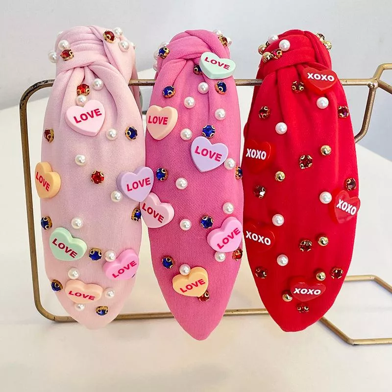 Valentine’s Day Pearl Rhinestone Knot Hairband