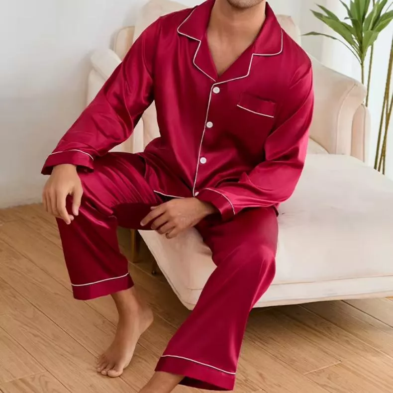 Men’s Satin Pajama Set – Long Sleeve & Trousers, Luxurious Loungewear