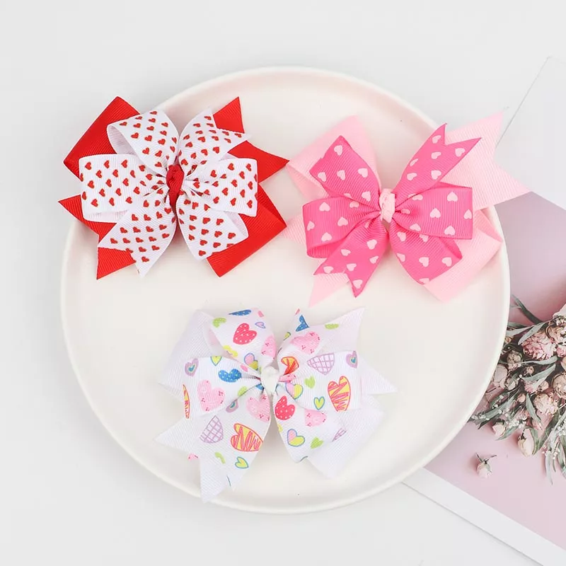 Valentine’s Day Pink Heart Swallowtail Hair Bow Clips for Girls