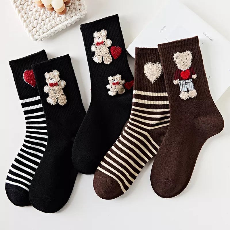 Cute Cartoon Bear Kawaii Crew Socks for Women