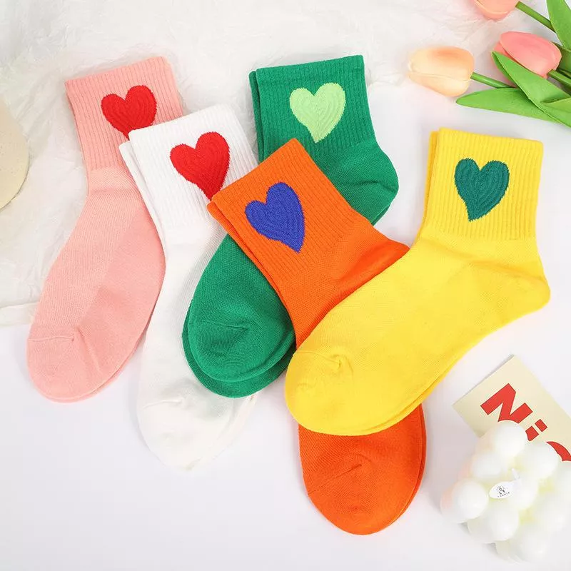 Women’s Thin Cotton Mesh Socks with Love Heart Embroidery for Casual Wear