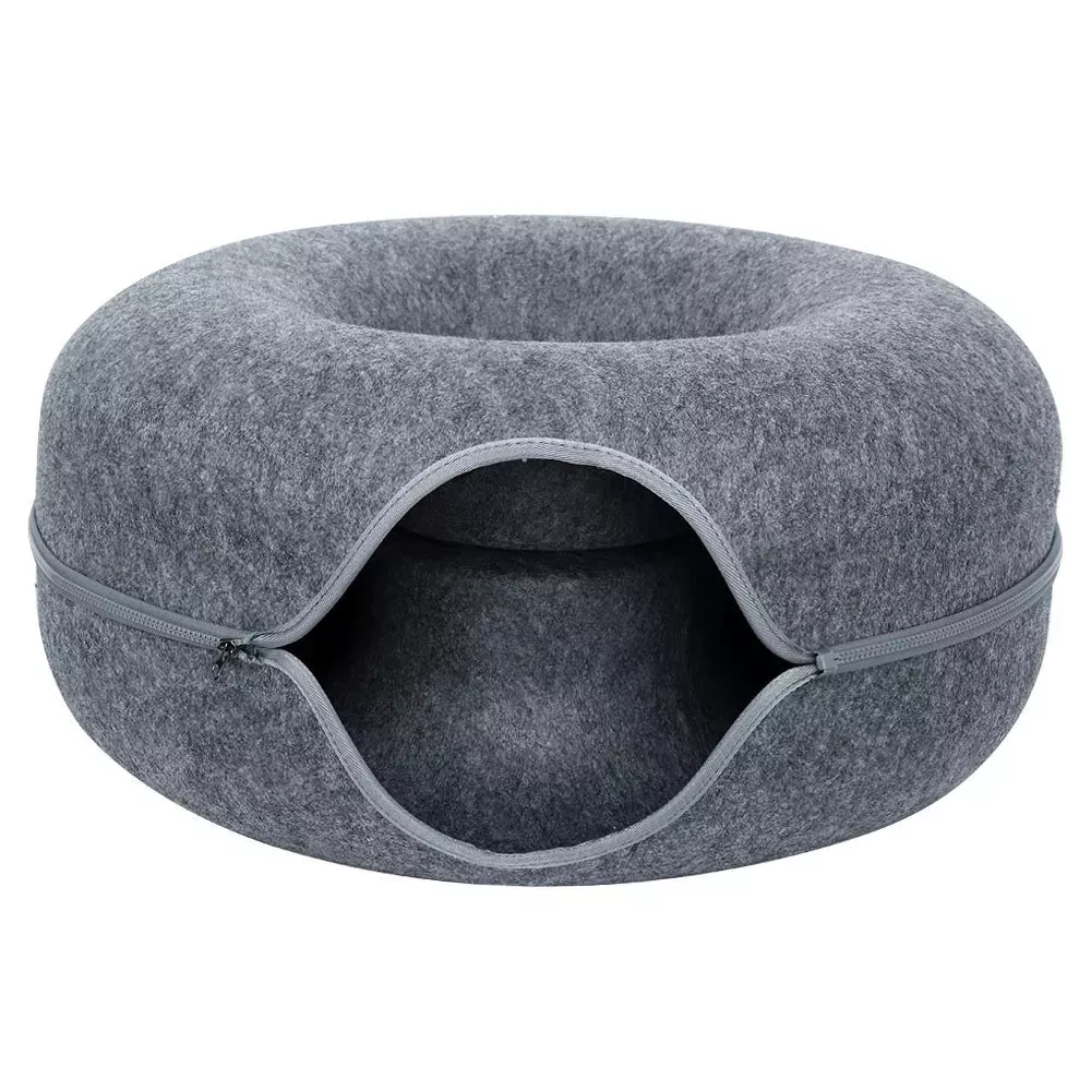 • 2-in-1 Functionality: A soft, plush donut bed paired with a detachable felt tunnel for play and relaxation.