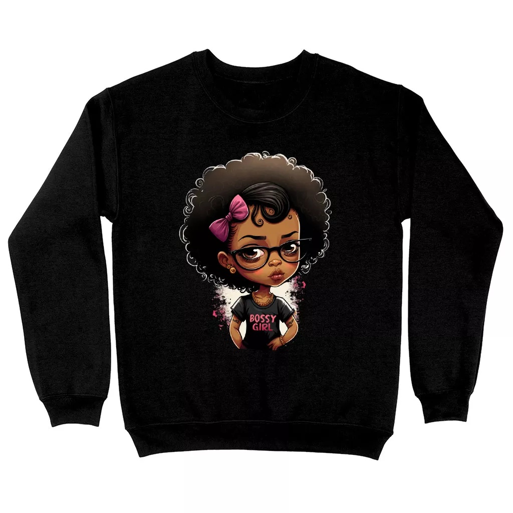 Cute Anime Black Girl Sweatshirt – Graphic Crewneck Sweatshirt – Cartoon Sweatshirt