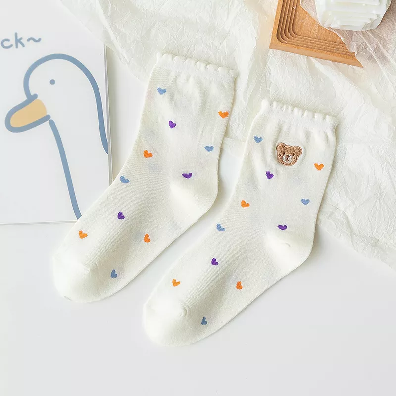 Step into a world of cuteness and comfort with these adorable Women’s Cartoon Embroidered Socks. Featuring delightful designs like bears, cherries, and flowers, these kawaii socks add a touch of fun and whimsy to your outfit. Crafted from high-quality cotton, they provide a soft, breathable, and lightweight feel, perfect for all-day wear. Whether you’re dressing up for a casual outing or lounging at home, these socks are a delightful addition to your wardrobe.