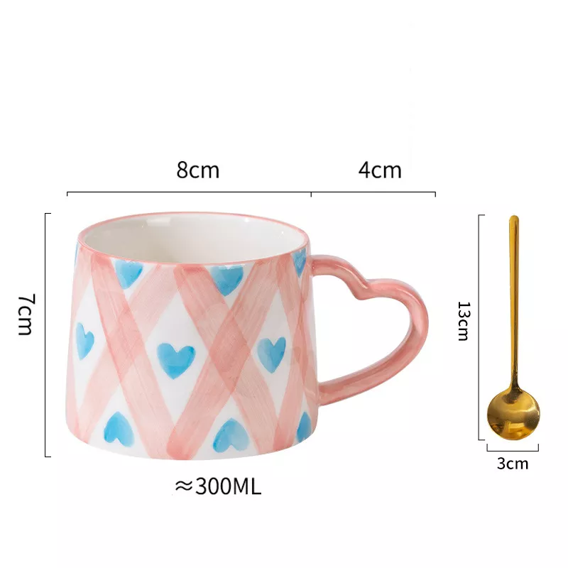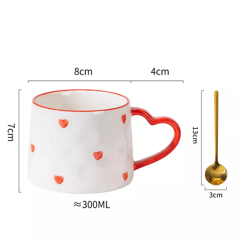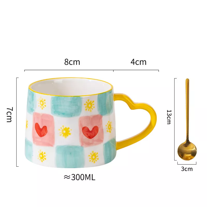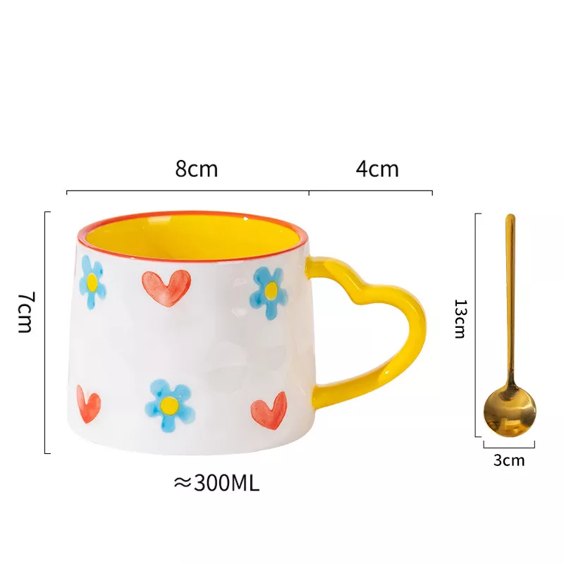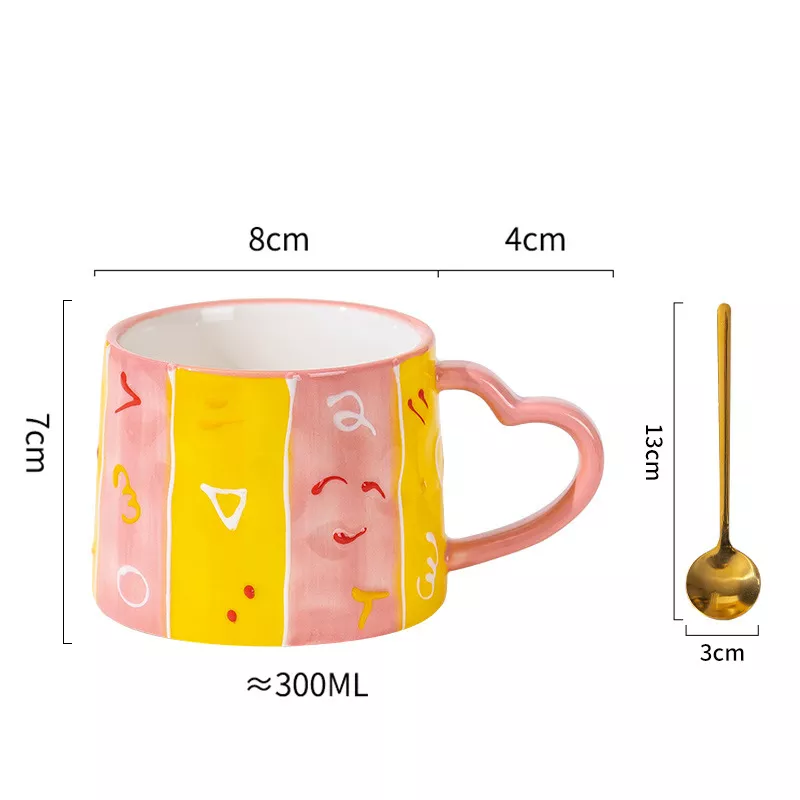 Brighten up your mornings and elevate your coffee break with this adorable hand-painted ceramic mug. With its unique heart design and vibrant colors, this 300ml mug is more than just a drinkware accessory – it’s a work of art that adds a touch of warmth to your everyday routine. Whether you’re sipping your morning coffee, afternoon tea, or enjoying a cozy cup of milk, this mug is the perfect companion for any drink.