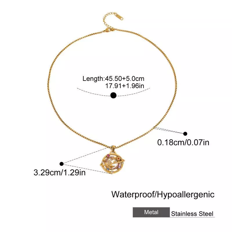Step into a world of celestial beauty with the 18K Gold Zircon Universe Pendant Necklace. Featuring a mesmerizing moon and star design, this pendant radiates sophistication and wonder, making it a perfect gift for her. Crafted with meticulous attention to detail, this necklace combines timeless elegance with modern versatility, ensuring it becomes a cherished addition to any jewelry collection.