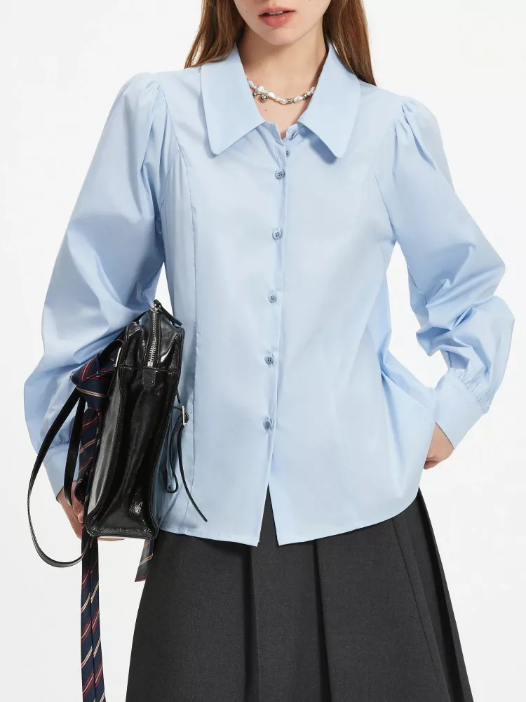 This blue fishbone long-sleeved shirt is all about effortless elegance. The bubble sleeves add a touch of drama and fun, while the slim fit design creates a flattering silhouette that enhances your natural shape. The chiffon fabric is both breathable and lightweight, making it comfortable to wear all day long. Whether you’re in the office or out for a casual gathering, this shirt offers the perfect balance of chic style and everyday comfort.