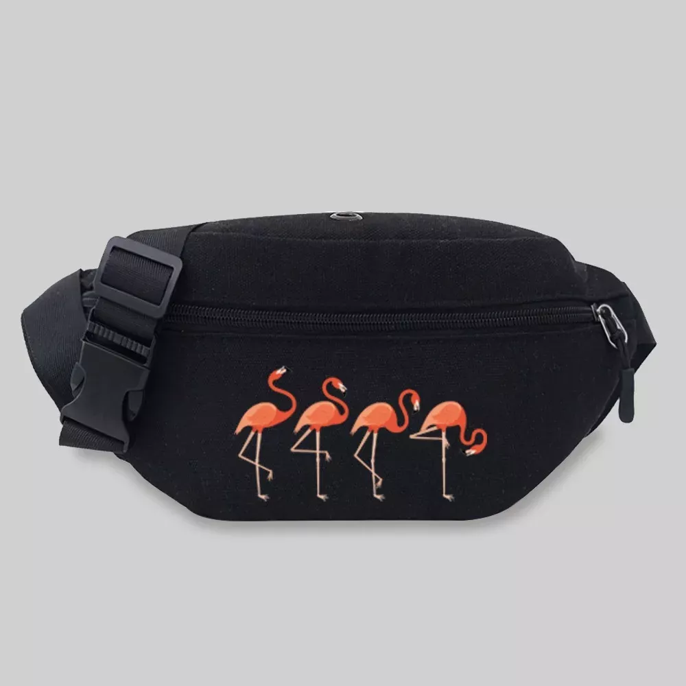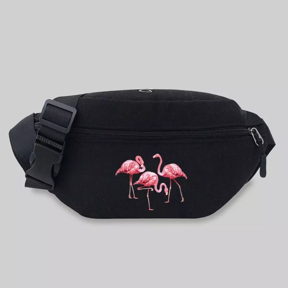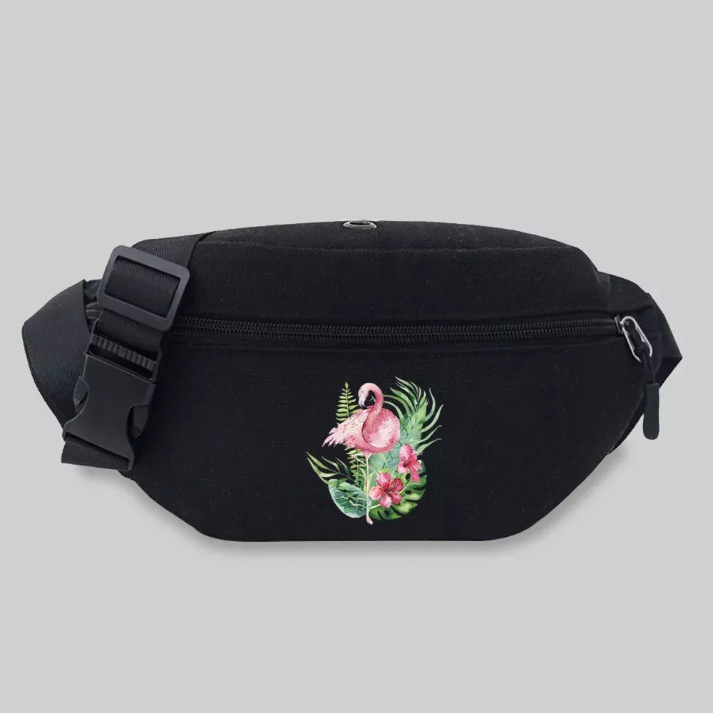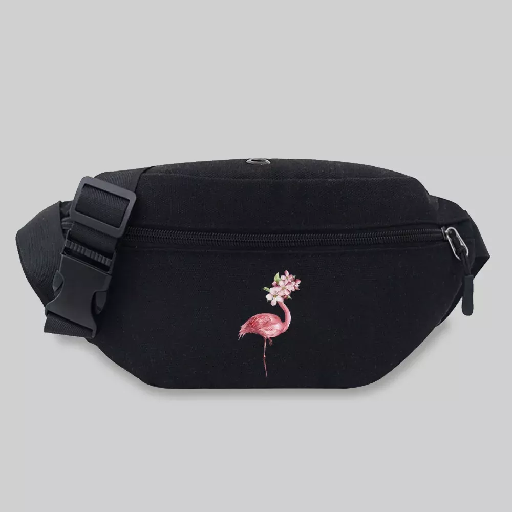 Step out in style with this Flamingo Print Unisex Belt Bag, the perfect combination of functionality and fashion. Lightweight and compact, this fanny pack is ideal for outdoor activities, casual outings, or traveling. Its bold flamingo pattern and trendy black canvas design add a pop of personality to your look while keeping your essentials safe and accessible. Designed for unisex use, it’s a versatile accessory that blends convenience with charm.