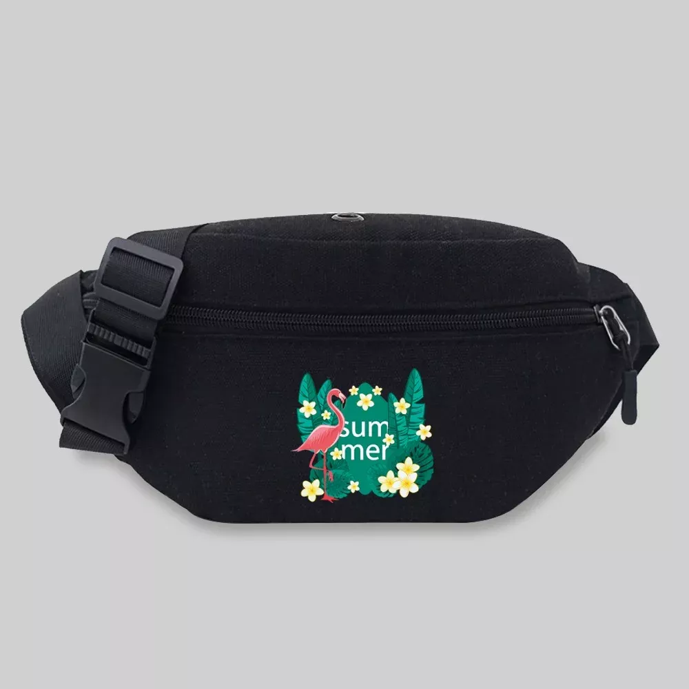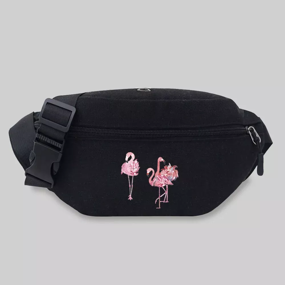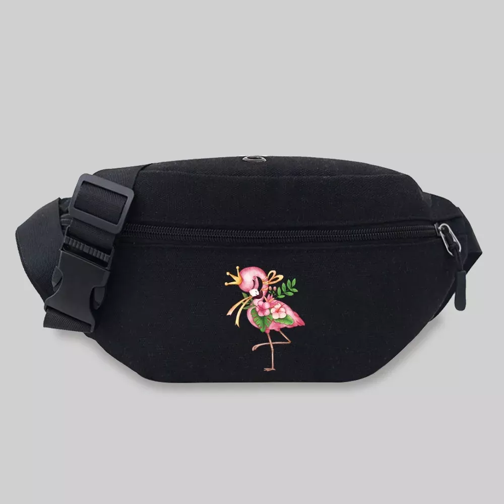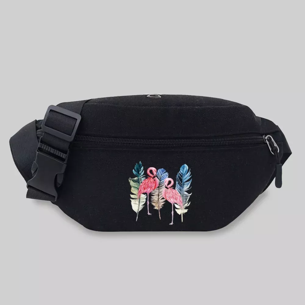 Step out in style with this Flamingo Print Unisex Belt Bag, the perfect combination of functionality and fashion. Lightweight and compact, this fanny pack is ideal for outdoor activities, casual outings, or traveling. Its bold flamingo pattern and trendy black canvas design add a pop of personality to your look while keeping your essentials safe and accessible. Designed for unisex use, it’s a versatile accessory that blends convenience with charm.