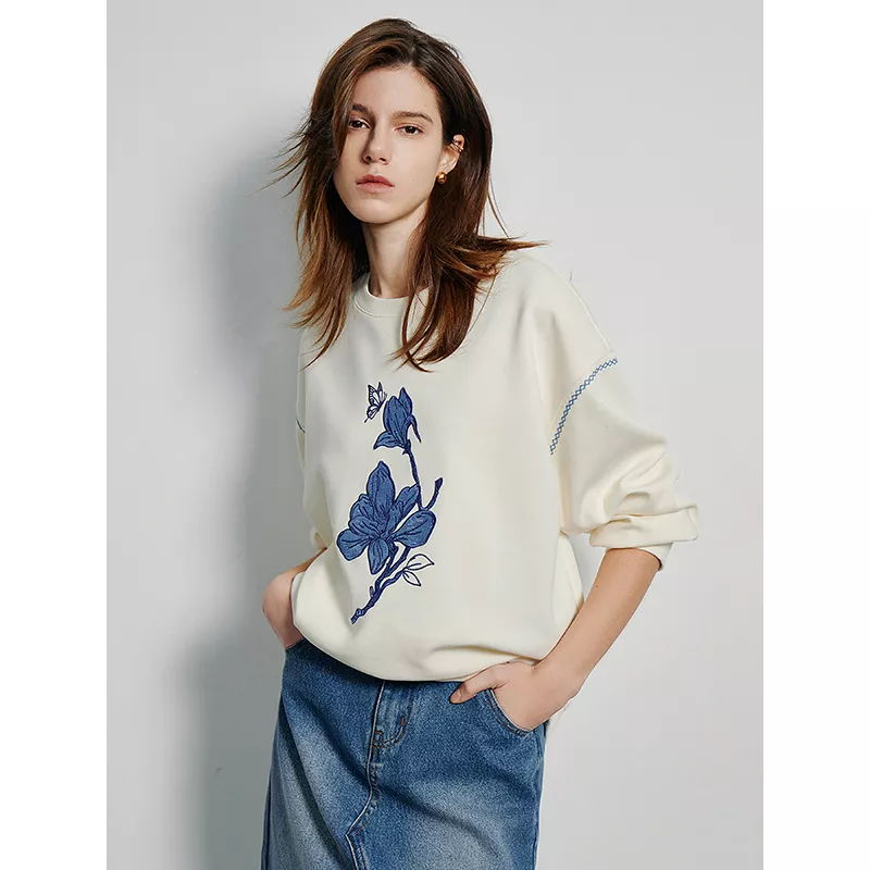 This sweatshirt is perfect for women who want a combination of comfort and flair. The delicate floral embroidery stands out, creating a unique style that’s perfect for the spring and fall seasons. The soft cotton fabric ensures you stay comfortable whether you’re running errands, enjoying a lunch date, or lounging at home. With its loose, relaxed fit and full sleeves, this sweatshirt offers the perfect balance of cozy and fashionable.