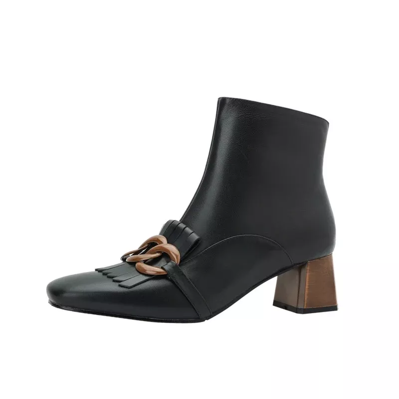 Make a bold statement this winter with these stylish women’s ankle boots. Designed with a distinctive fringe detail, these genuine leather boots offer a mix of modern style and classic comfort. The square toe and high square heel provide a sleek, fashion-forward silhouette while ensuring all-day stability and comfort. Whether you’re dressing up for a night out or adding a touch of sophistication to your everyday look, these boots will quickly become your go-to winter footwear. Perfect for both casual outings and dressier occasions, these boots combine practicality with an elegant British style.