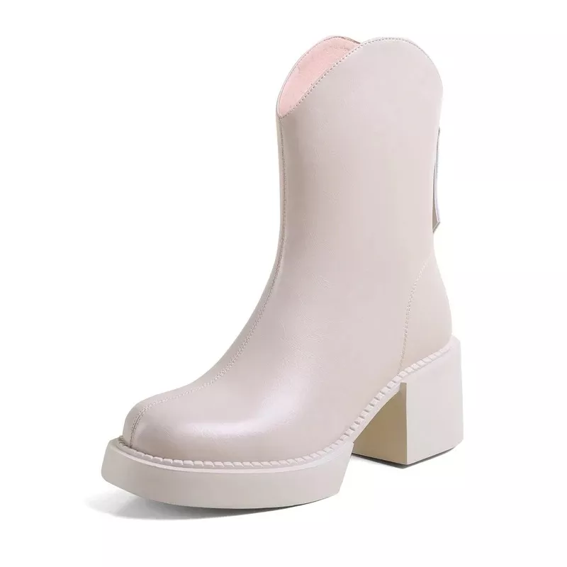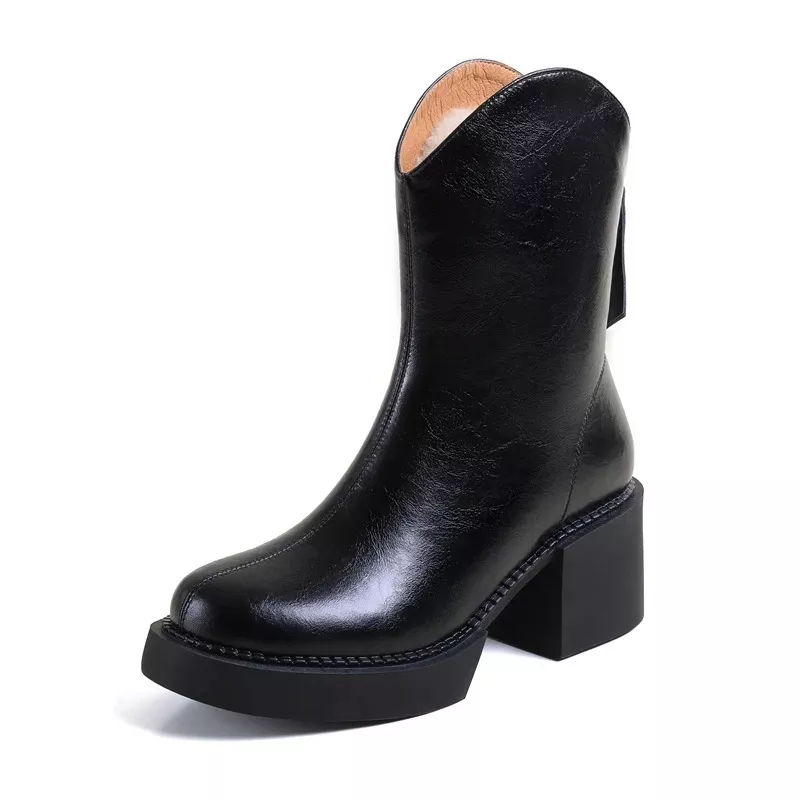 What sets these boots apart is the combination of high-quality materials and practical design. The genuine leather exterior ensures durability and a sophisticated look, while the wool lining provides unparalleled warmth and comfort. The square heel is not only trendy but also stable, making it easy to wear these boots all day long. Whether you’re walking through snow-covered streets or attending an office meeting, these boots offer the perfect balance of style, warmth, and comfort. The zipper closure adds a modern touch while ensuring a secure fit.