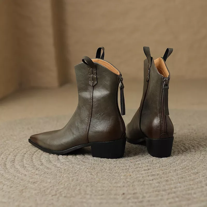 Step into the perfect blend of sophistication and comfort with these genuine leather Chelsea boots. Designed for the modern woman, these boots feature a retro-inspired look with a contemporary twist. The sleek pointed toe and chunky square heel add an edge to your outfit, while the ankle-high design and plush lining keep you cozy during chilly months. Whether you’re dressing up for work or heading out for a casual evening, these boots are the ultimate wardrobe staple.