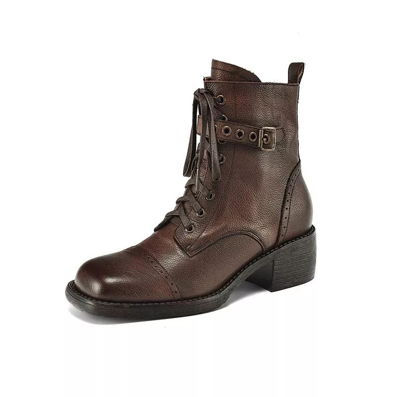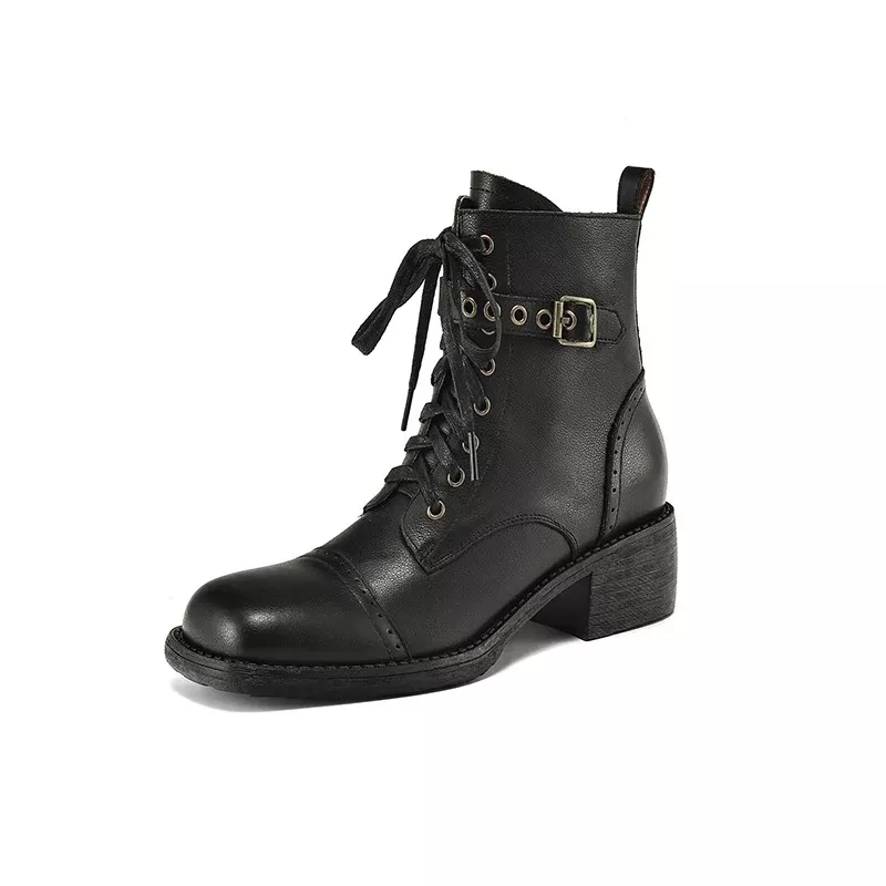 These genuine leather boots offer the perfect blend of style, comfort, and practicality. The classic lace-up design allows for a secure, adjustable fit, while the zipper closure adds convenience. With their medium-height chunky heel, they provide just the right amount of lift, so you can enjoy both fashion and comfort all day long.