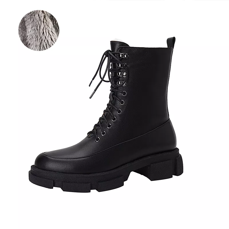 Elevate your winter wardrobe with these sleek and versatile lace-up ankle boots. Crafted from premium cowhide leather, these boots offer the perfect blend of fashion and function. The round-toe design and thick rubber soles ensure comfort and durability, making them a must-have for every modern woman. Whether you’re hitting the streets or dressing up for an evening out, these boots are an all-season statement piece.