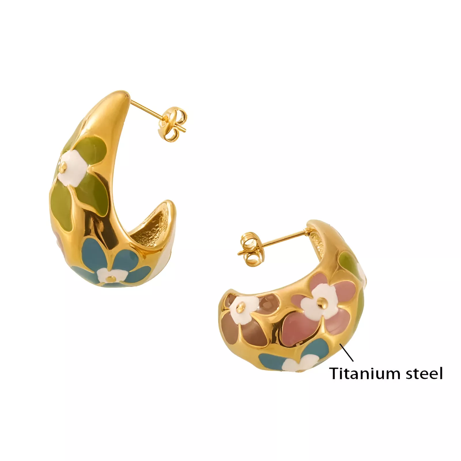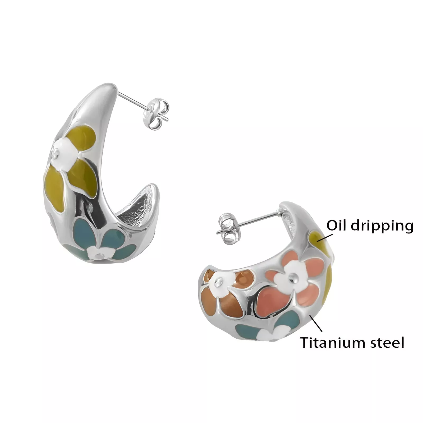 Discover the perfect blend of elegance and durability with our Gold and Silver Waterproof Stainless Steel Flower Crescent Earrings for Women. Designed to make a statement, these earrings feature a unique crescent shape adorned with delicate enamel flowers, adding a touch of vintage charm to any outfit. Whether you’re heading to a formal event or simply want to add a little sparkle to your everyday look, these earrings are a must-have addition to your jewelry collection.