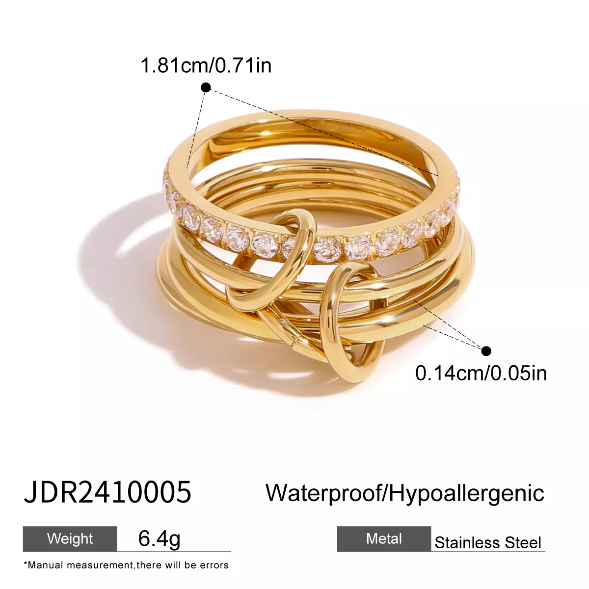 The Gold Plated Stainless Steel Four-Layer White Zircon Ring is more than just jewelry—it’s a statement of confidence and individuality. The combination of premium materials, a sleek design, and its unisex versatility make it an essential addition to any collection. The waterproof feature adds practicality, ensuring this ring is as reliable as it is stylish.
