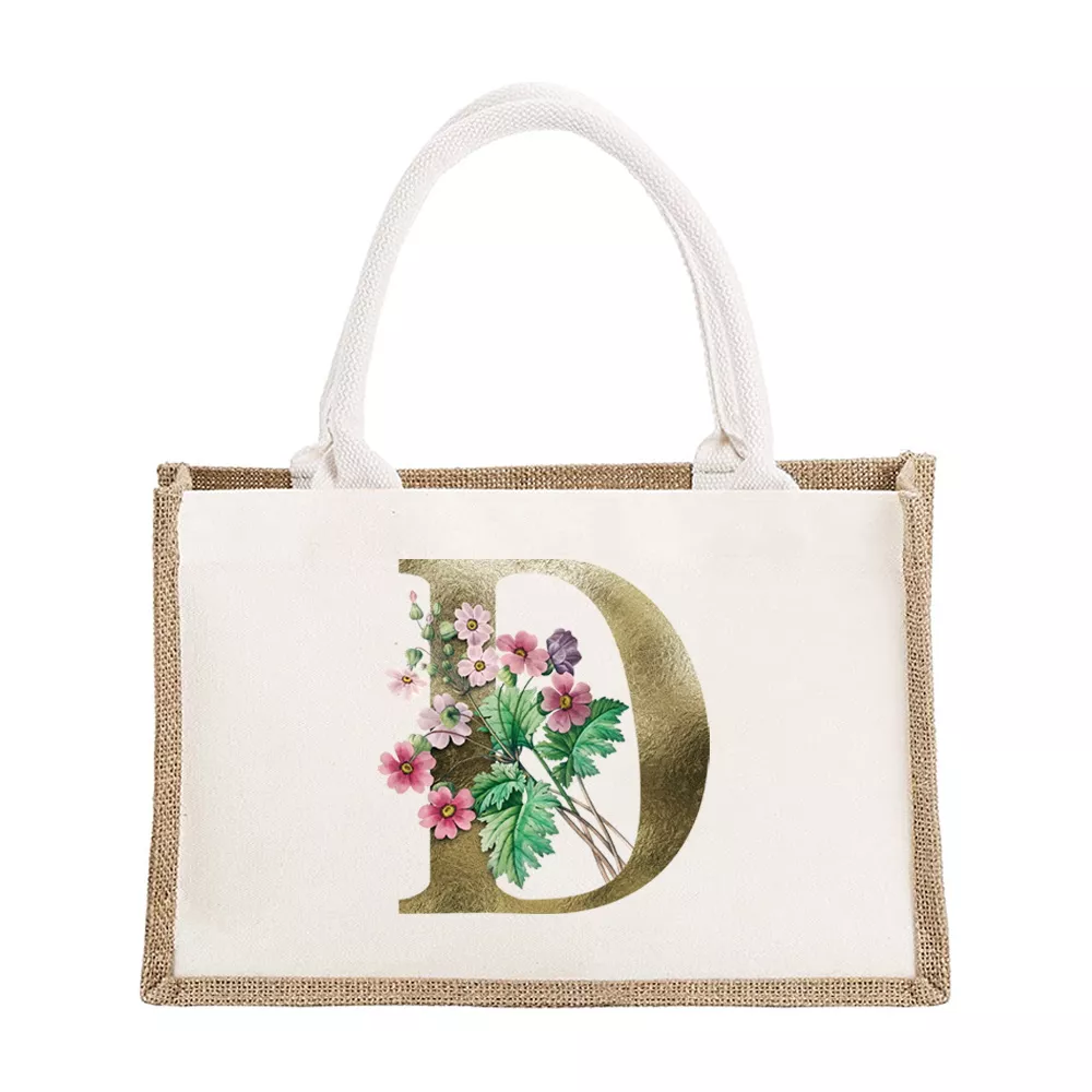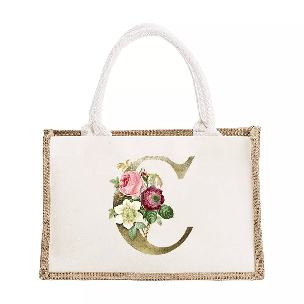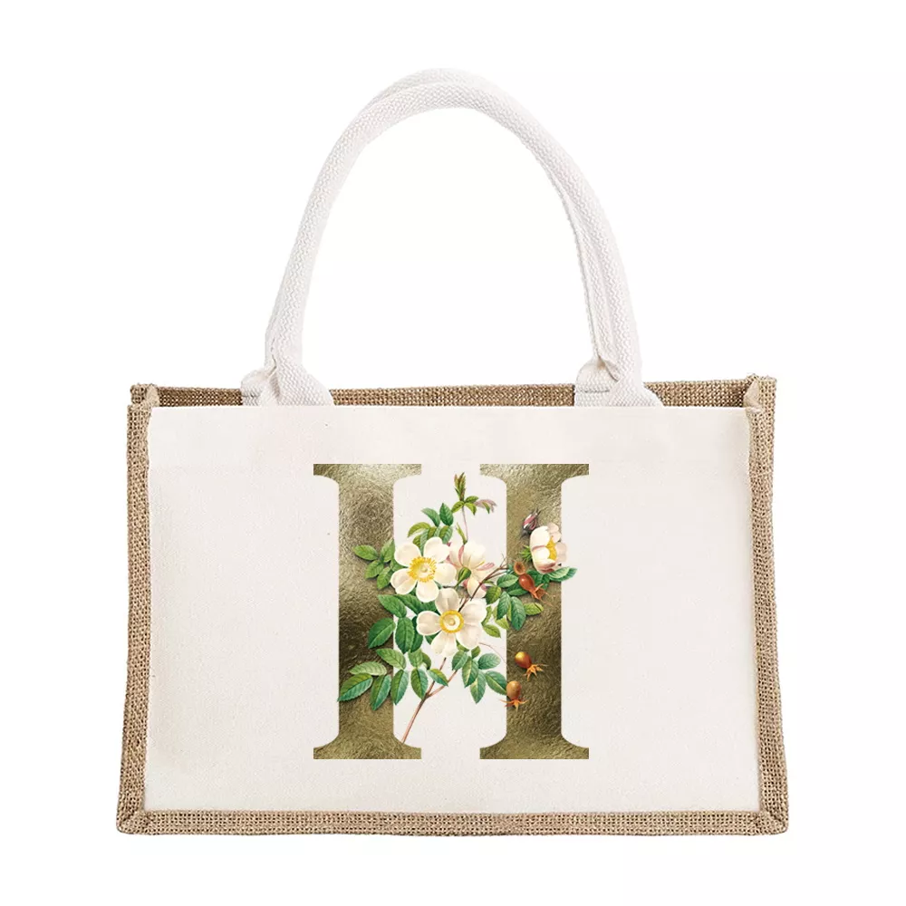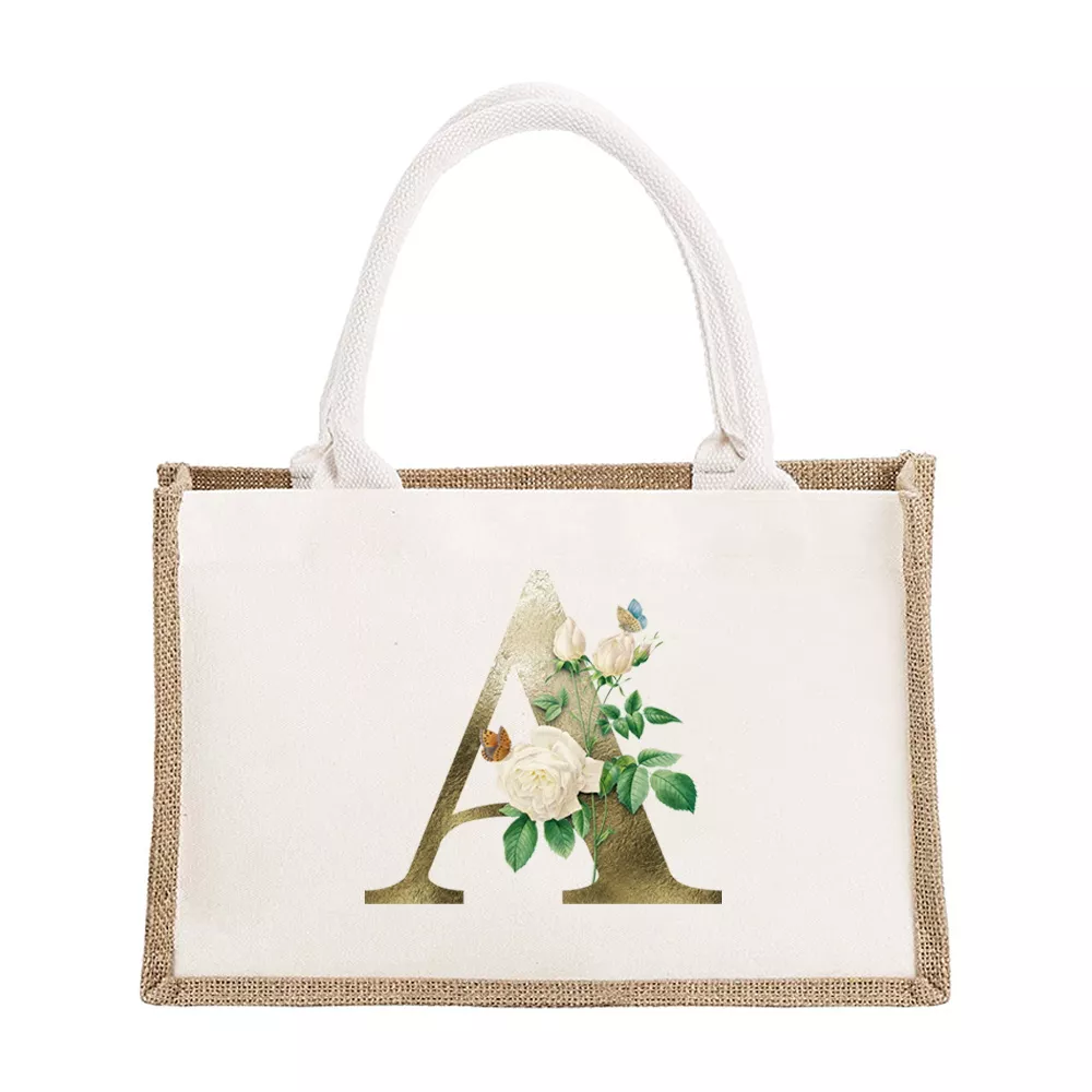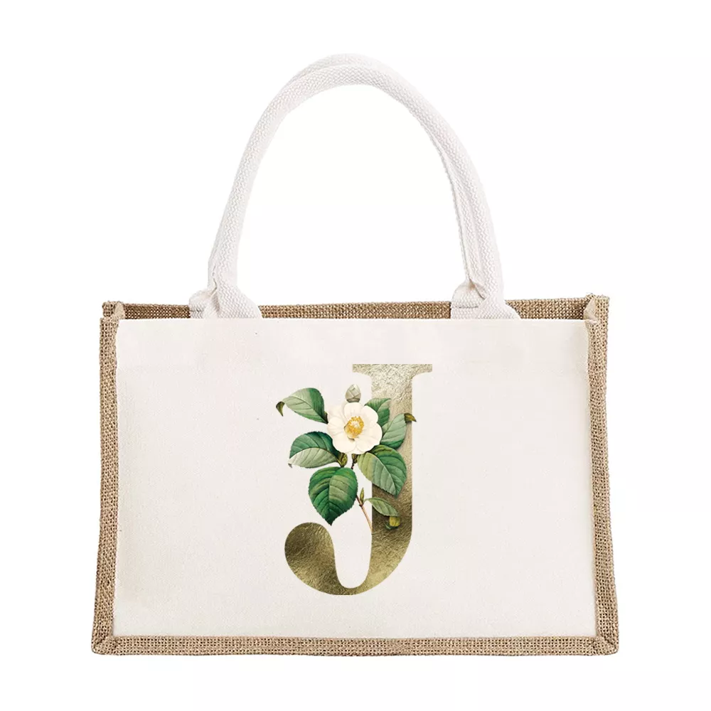 Whether you’re planning a thoughtful gift or looking for an eco-friendly way to carry your belongings, this Golden Letter Print Jute Canvas Tote Bag has you covered. Its durable design, spacious interior, and elegant appearance make it a must-have for every woman. Add a touch of style to your day while making a sustainable choice for the planet. Don’t wait—grab your tote today and carry with confidence!