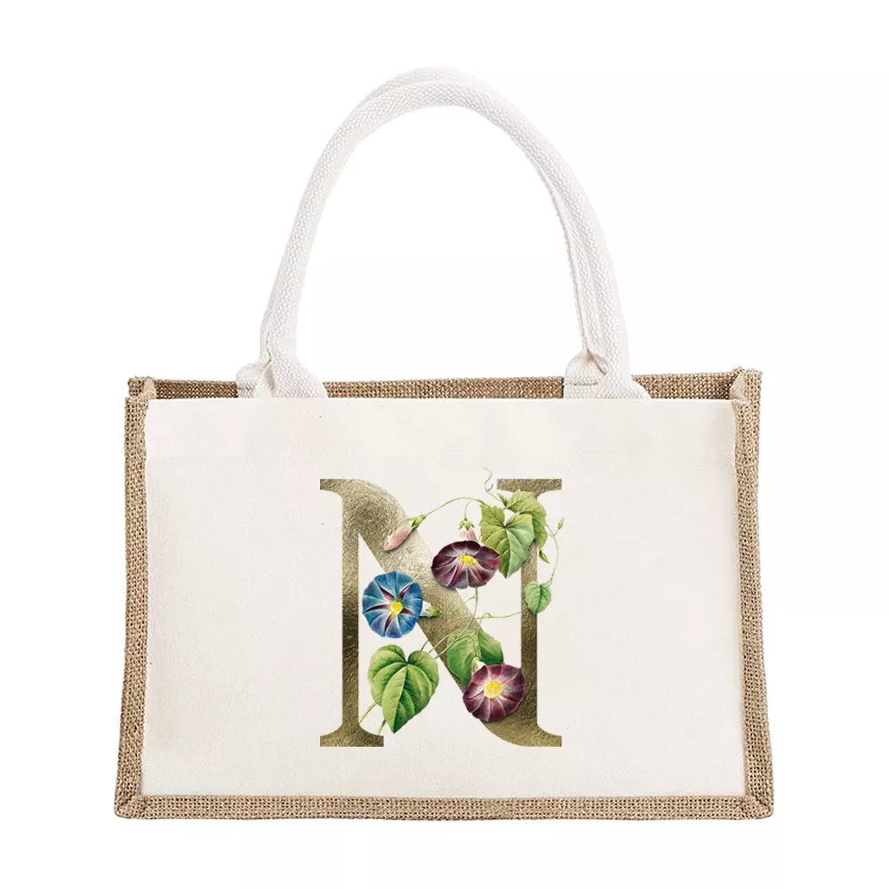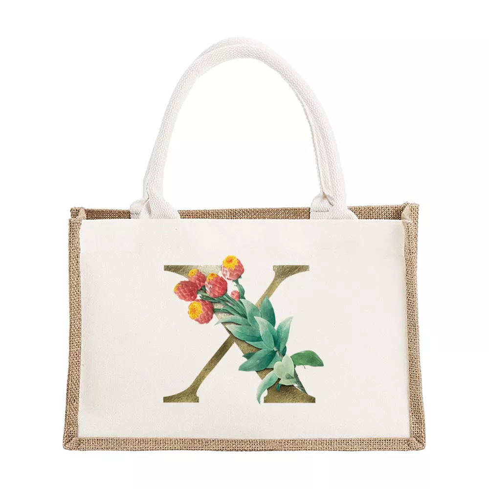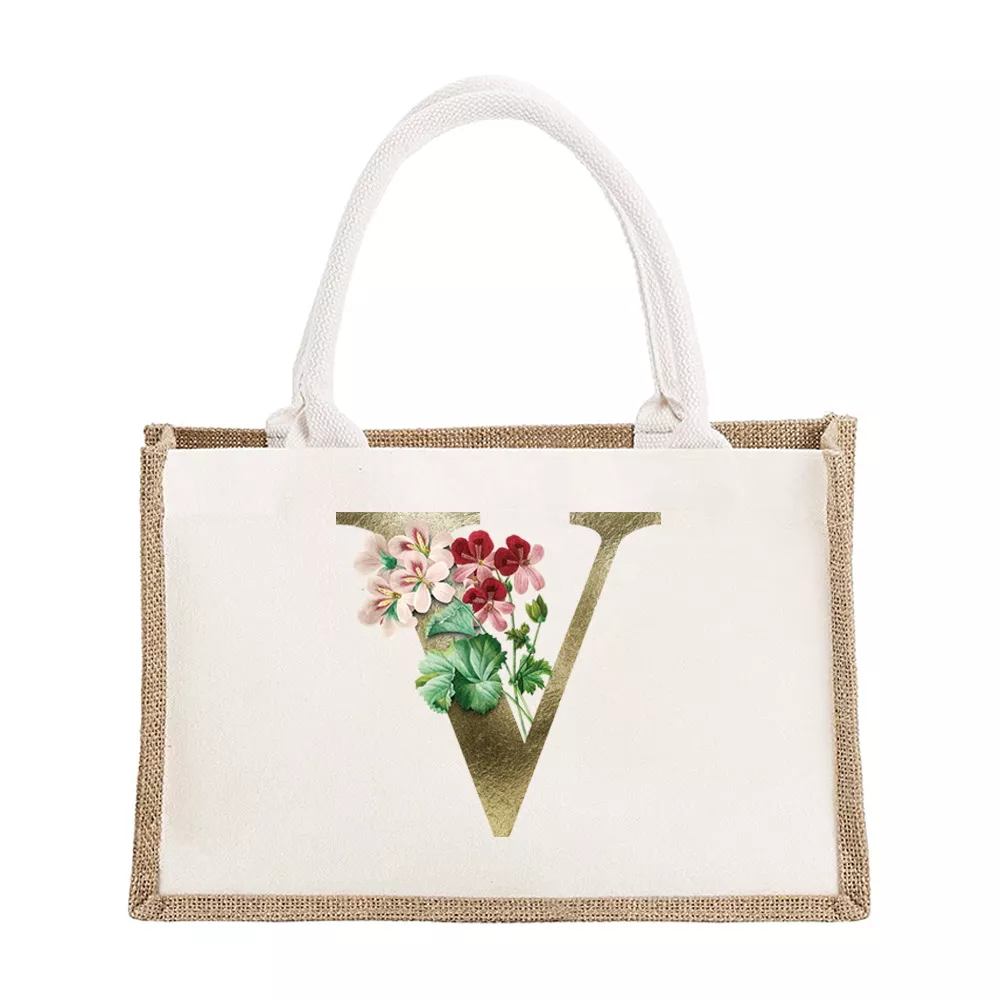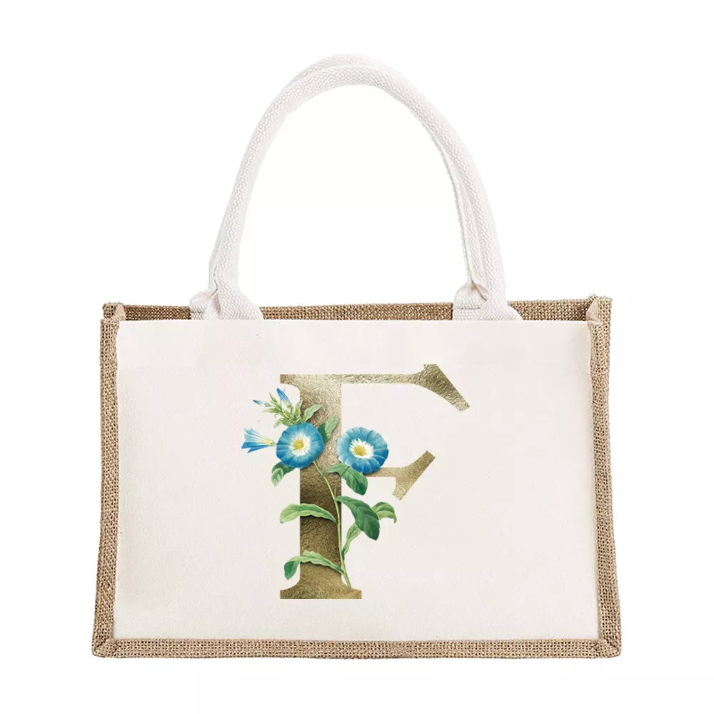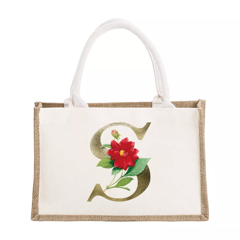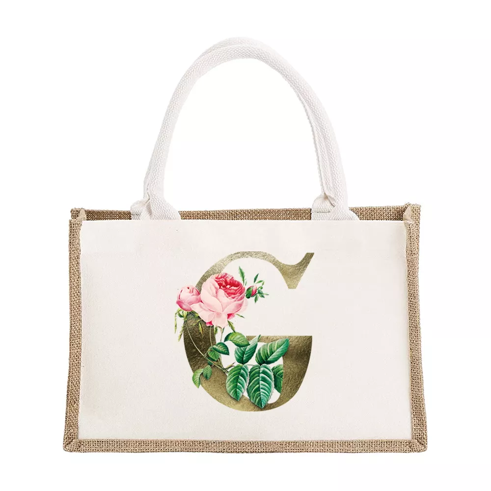 Whether you’re planning a thoughtful gift or looking for an eco-friendly way to carry your belongings, this Golden Letter Print Jute Canvas Tote Bag has you covered. Its durable design, spacious interior, and elegant appearance make it a must-have for every woman. Add a touch of style to your day while making a sustainable choice for the planet. Don’t wait—grab your tote today and carry with confidence!