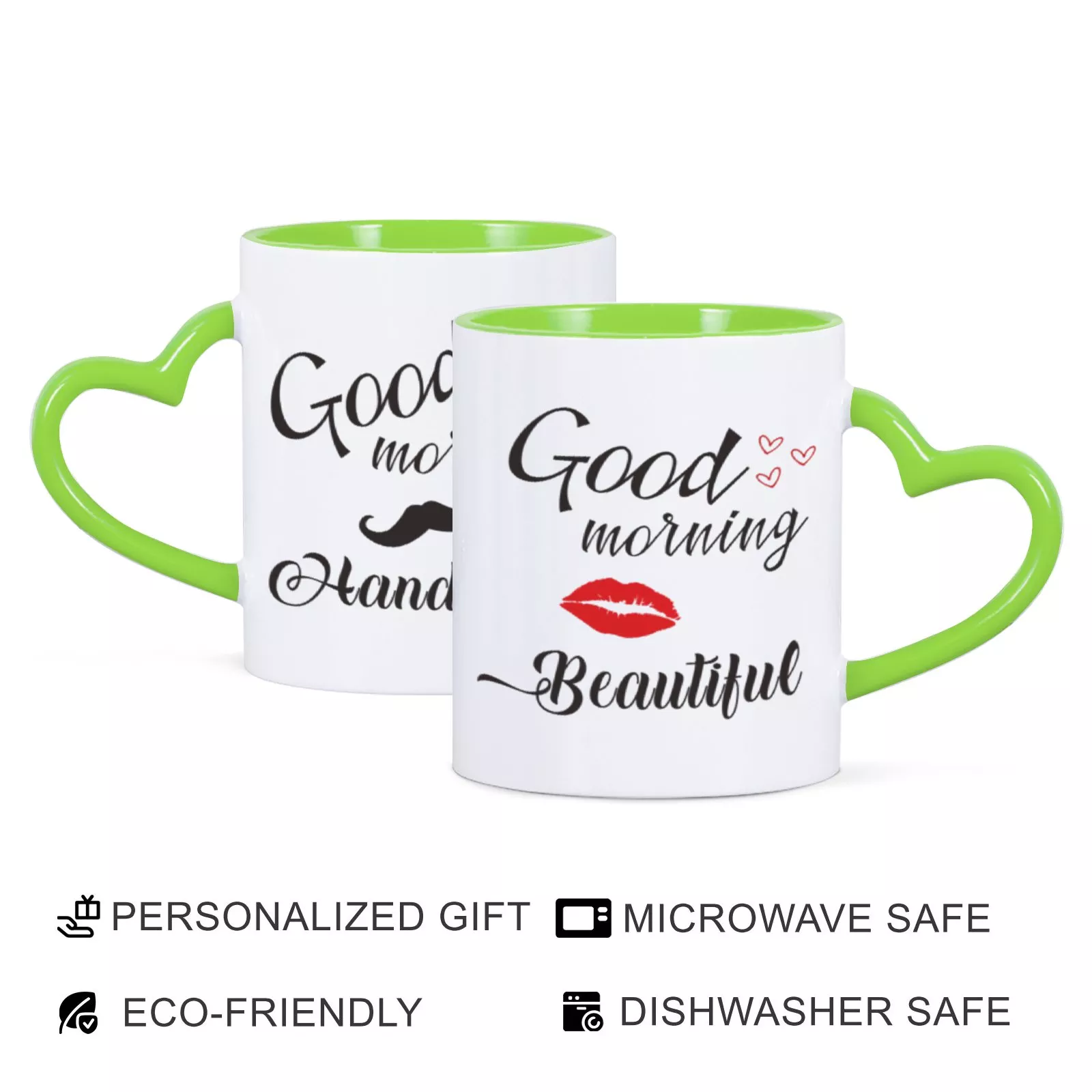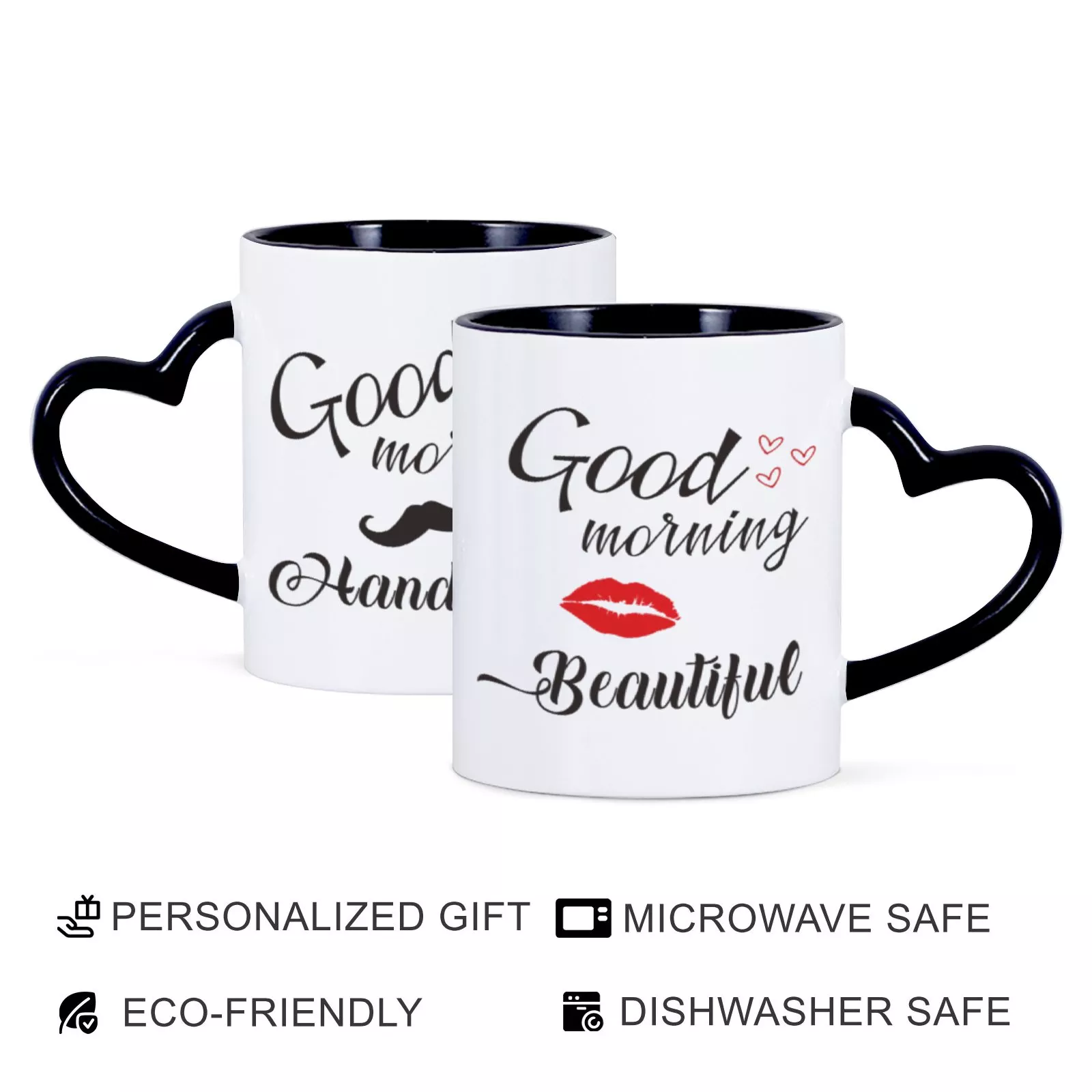 Make every morning a celebration of love with this delightful 2-piece ceramic coffee mug set. Featuring charming “Good Morning Beautiful” and “Good Morning Handsome” designs, these mugs are the perfect way for couples to share a warm beverage and an even warmer smile. Whether it’s an anniversary, wedding, or just a simple gesture of appreciation, these mugs bring joy and thoughtfulness to every sip.
