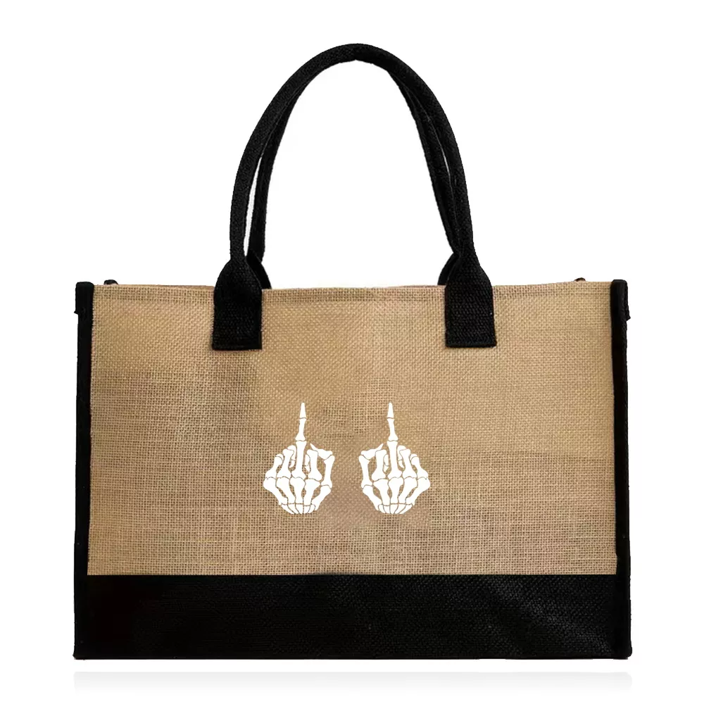 Whether you’re heading to the farmer’s market, lounging at the beach, or commuting to work, this jute tote bag is your go-to solution. Its stylish white print adds a touch of charm, while its roomy interior ensures you’re prepared for any outing. From storing groceries and books to acting as a chic carry-all for your travel essentials, this bag is as versatile as it is stylish.
