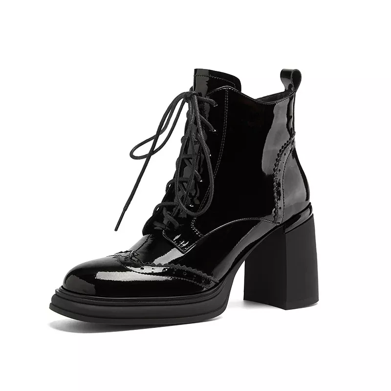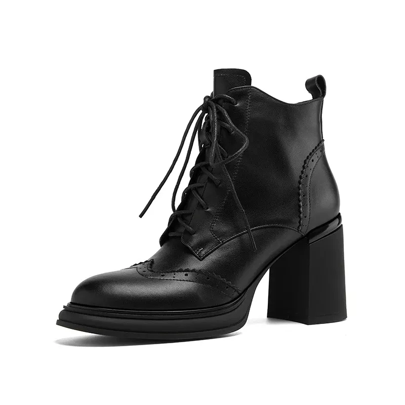 These lace-up leather boots offer a chic, modern twist on classic motorcycle footwear. With their super high heels, these boots provide a sophisticated edge to any outfit, while the round toe ensures comfort without compromising on style. The combination of genuine cow leather and short plush lining makes these boots both durable and warm, perfect for autumn and winter seasons. The zip closure ensures easy wearability, so you can slip them on and off with ease whenever you’re on the go.