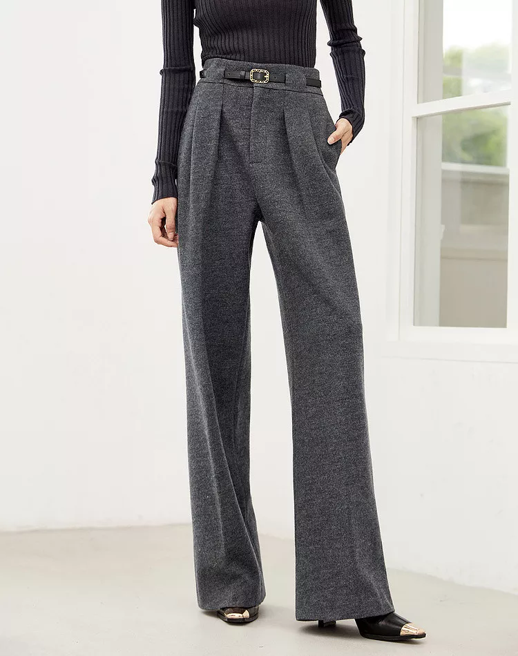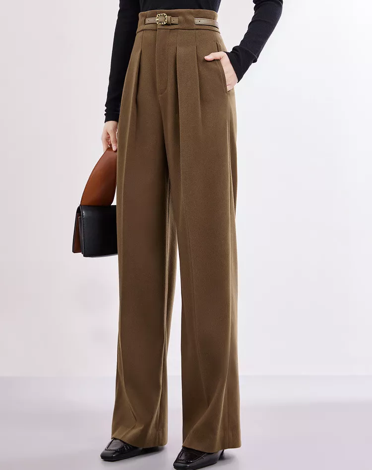 High Waist Coffee Wide Leg Woolen Pants for Women