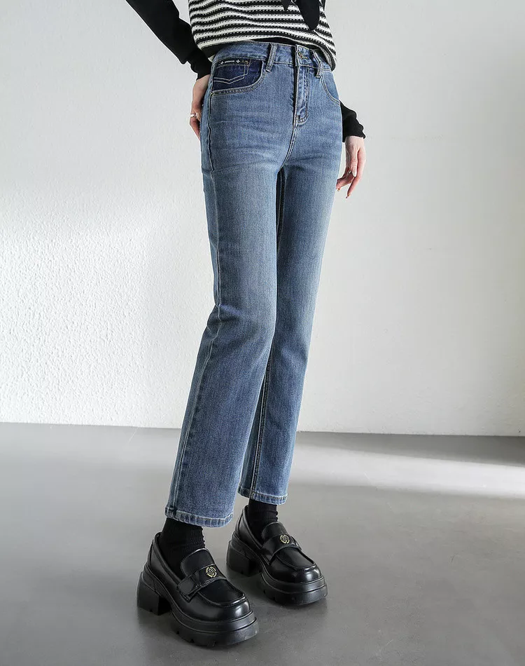 Pair these jeans with a cozy turtleneck sweater and ankle boots for a chic winter look, or add a leather jacket for an edgy touch. Their straight-leg design makes them versatile enough to wear with any top, from blouses to oversized tees.
