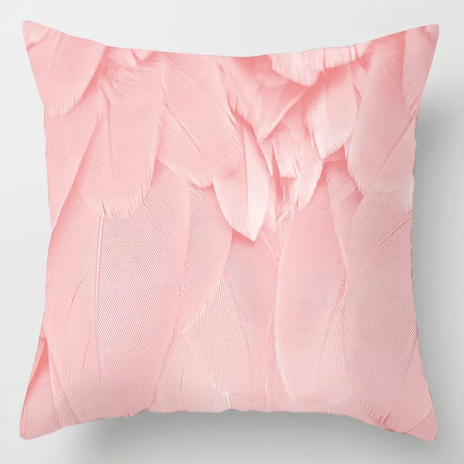 Hot Pink Roses Swan Feathers Geometric Cushion Cover Nordic Modern Pillowcase