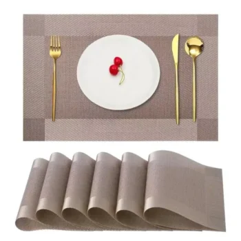 Classic Beige Vinyl Weave Placemats, 12″x18″ Heat Resistant Table Mats – Set of 6