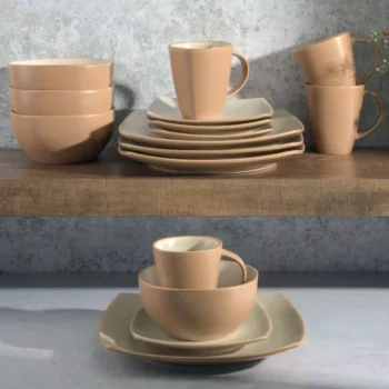 Modern Square Stoneware 16-Piece Dinnerware Set, Soho Lounge Sand Collection
