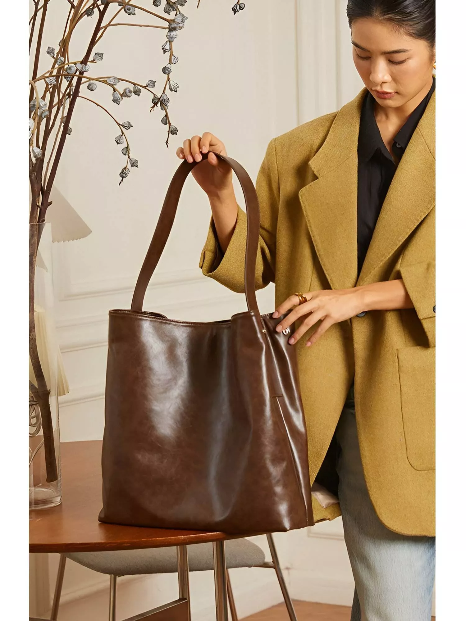 The bag’s generous size and roomy interior are perfect for carrying everything you need—your wallet, phone, makeup, and even a tablet or small laptop. Its sleek silhouette and solid color options (Black, Brown, Coffee) make it a timeless piece in any wardrobe. With a magnetic closure and an easy-to-carry single shoulder strap, this tote bag offers both comfort and style for your daily commute or casual outings.